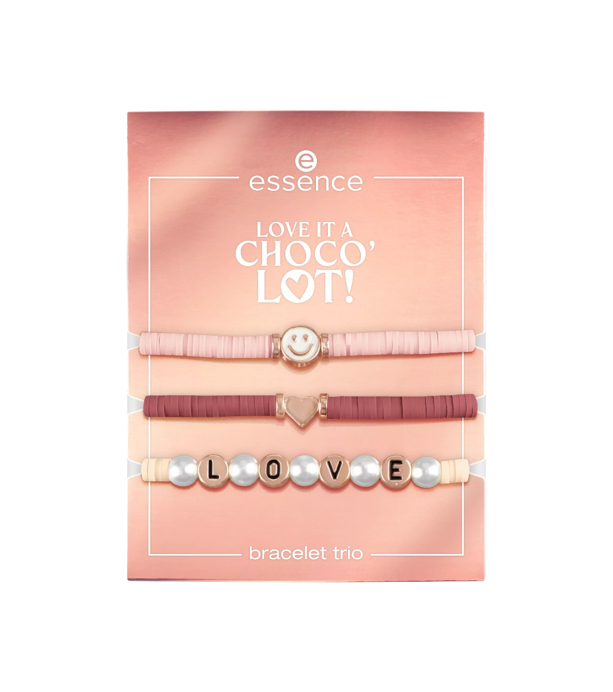 Das Armbandtrio aus der Love It A Choco'lot-Kollektion von essence ist die perfekte Möglichkeit, jeden Look mit einer lustigen und eleganten Note zu ergänzen.