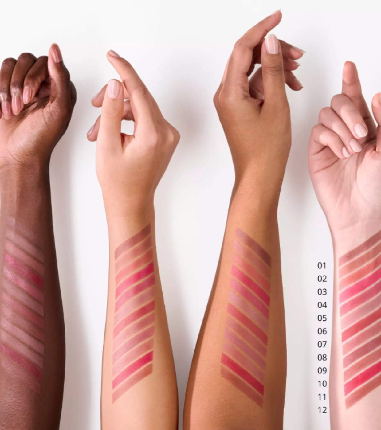 Die cremige, leichte Formel lässt sich mühelos auftragen und bietet eine aufbaubare mittlere Deckkraft mit einer halbmatten, samtigen Textur, die sich angenehm und leicht auf den Lippen anfühlt.