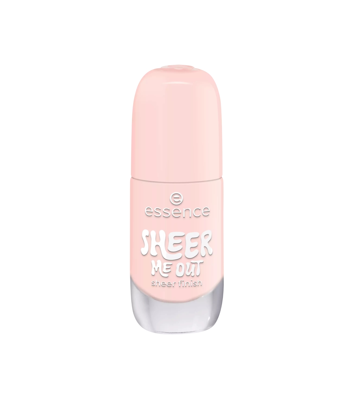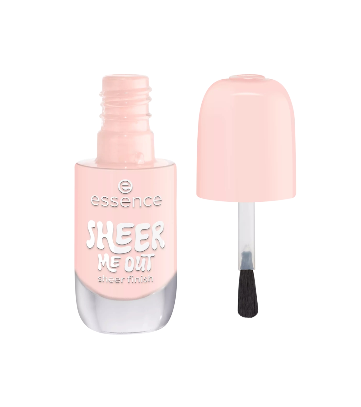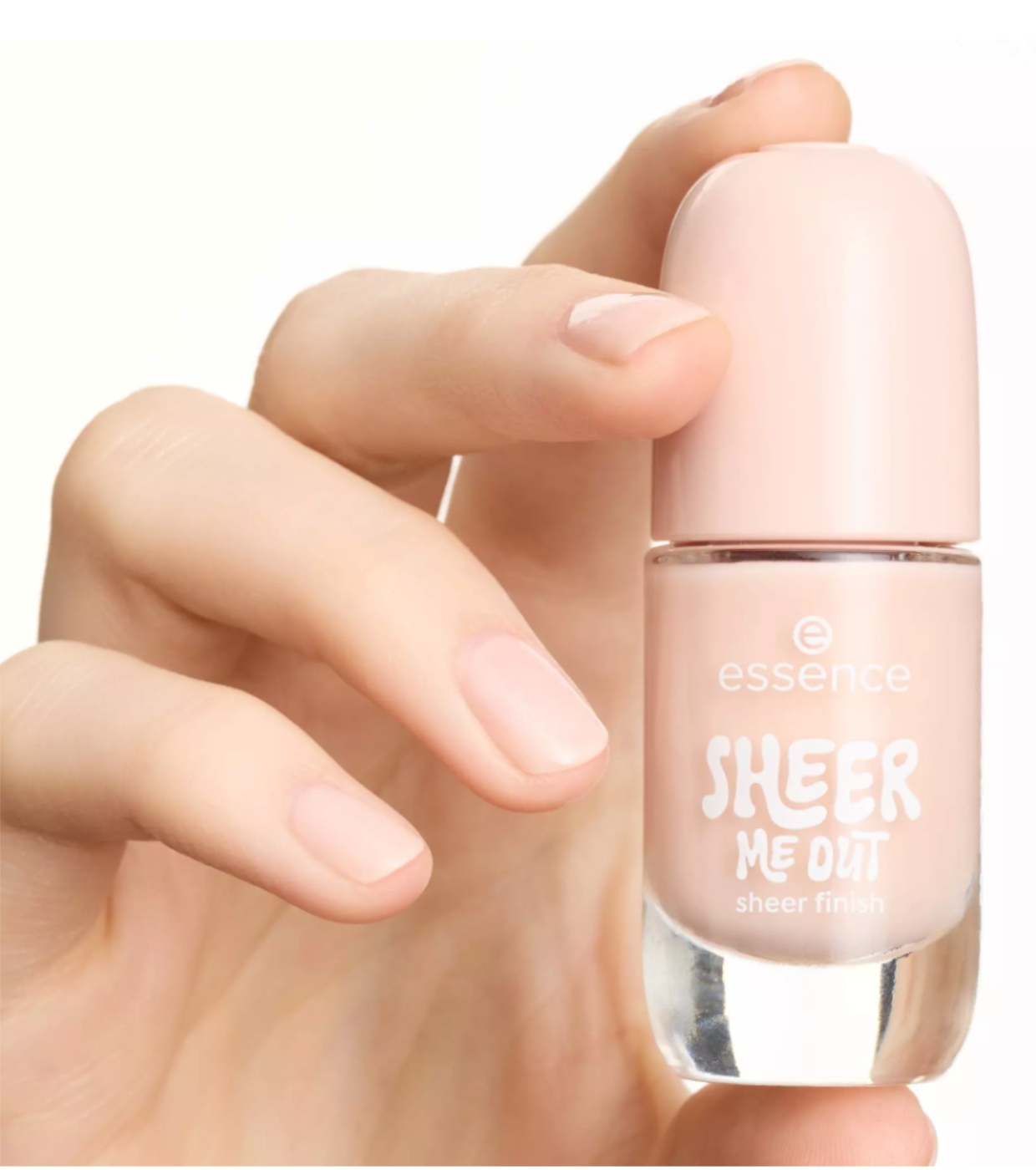 Der Gel-Nagellack Sheer Me Out von Essence in einem zarten, transparenten Pfirsichton eignet sich perfekt für eine natürliche Maniküre mit einem strahlenden, polierten Finish.
