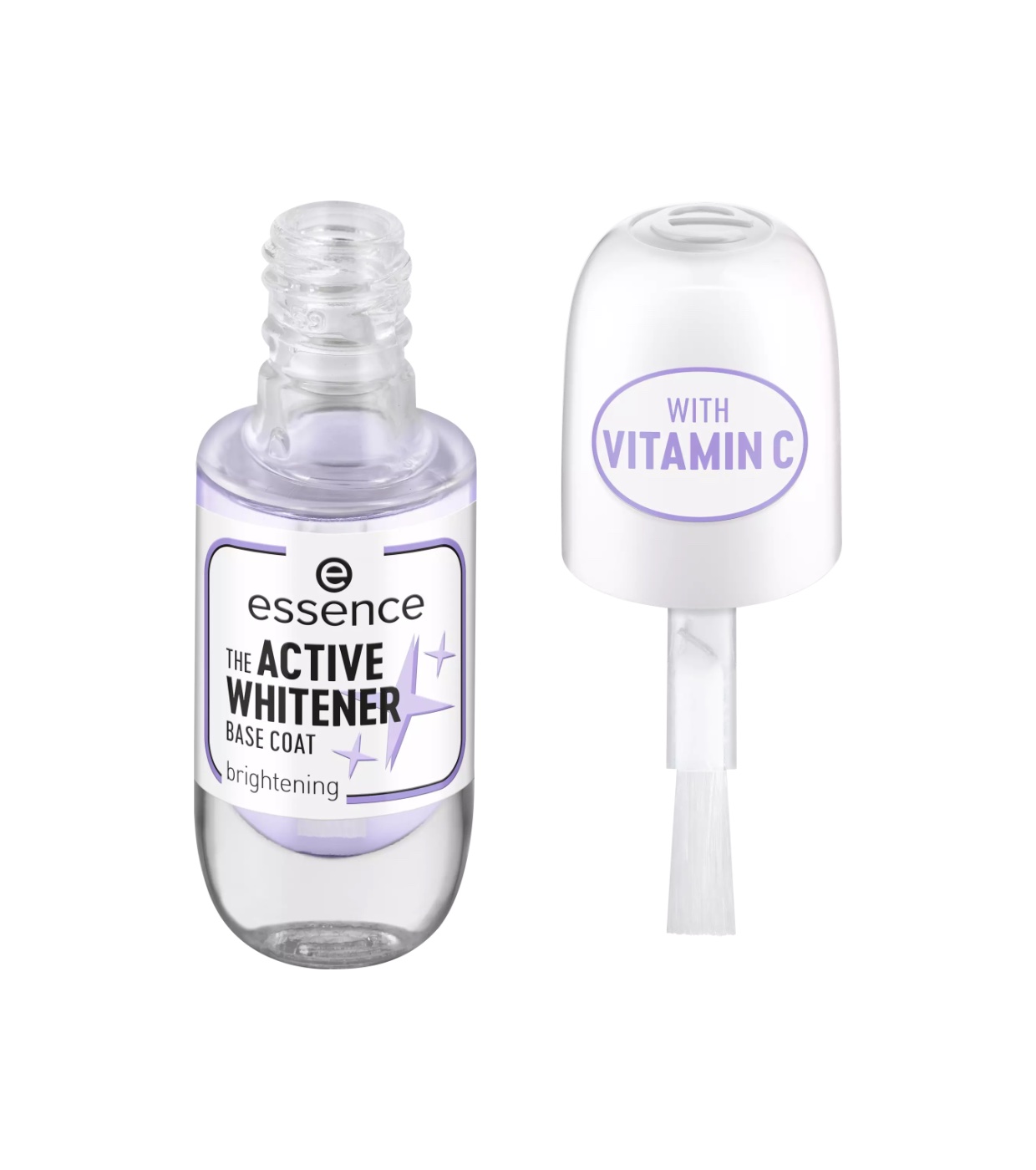 Verschönern Sie Ihre Nägel in Sekundenschnelle mit dem Nagel-Basislack essence THE ACTIVE WHITENER BASE COAT mit einer weichen, glänzenden blauen Textur.