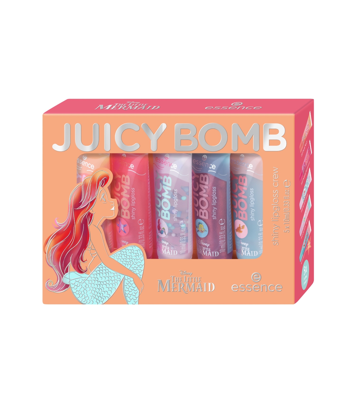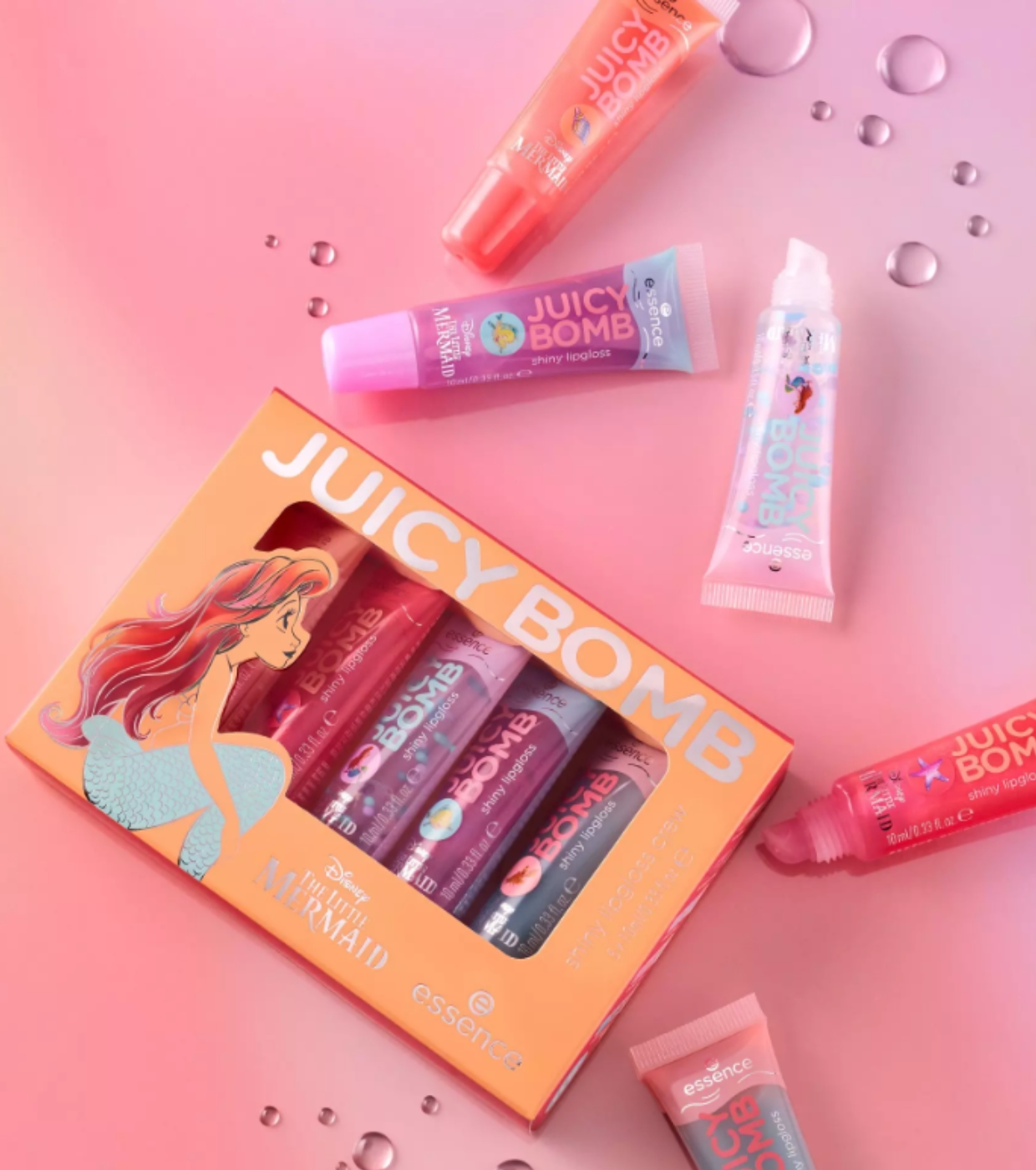 Verleihen Sie Ihren Lippen Glanz mit dem essence Juicy Bomb Lipgloss-Set , einer Sonderedition, die von The Little Mermaid inspiriert ist.