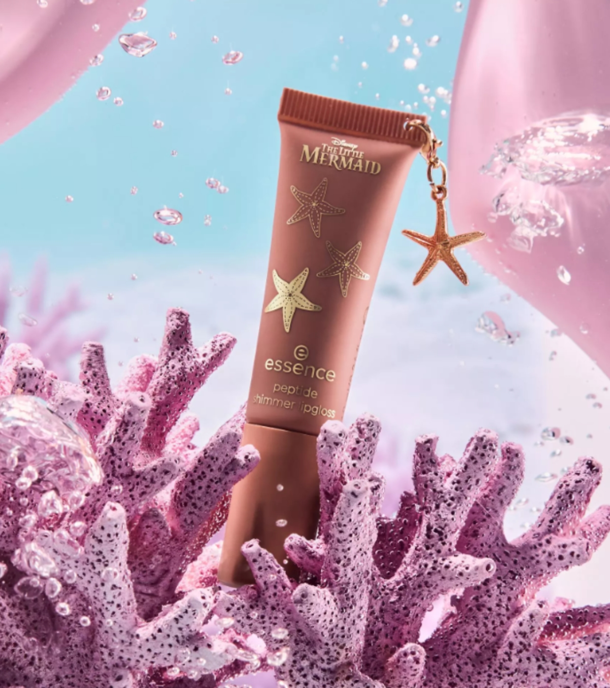 Verleihen Sie Ihren Lippen Glanz und Saftigkeit mit dem Peptid-Lipgloss aus der The Little Mermaid Kollektion von essence x Disney .