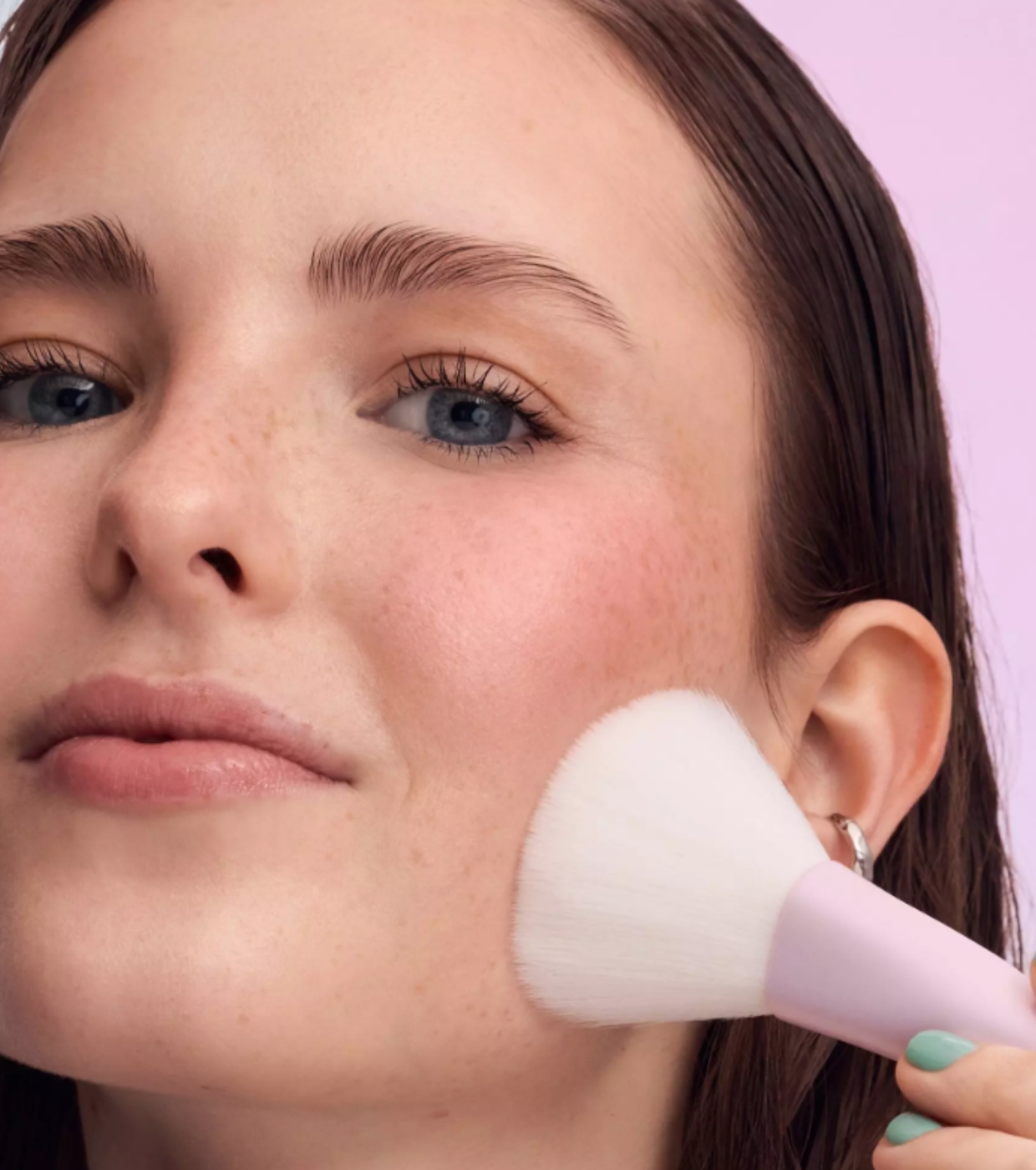 Der breite, ultraweiche Pinselkopf ermöglicht ein gleichmäßiges Auftragen von losem oder gepresstem Puder, fixiert das Make-up und sorgt für ein leichtes, natürliches Finish. Ideal zum Mattieren des Gesichts, ohne die Haut zu beschweren.