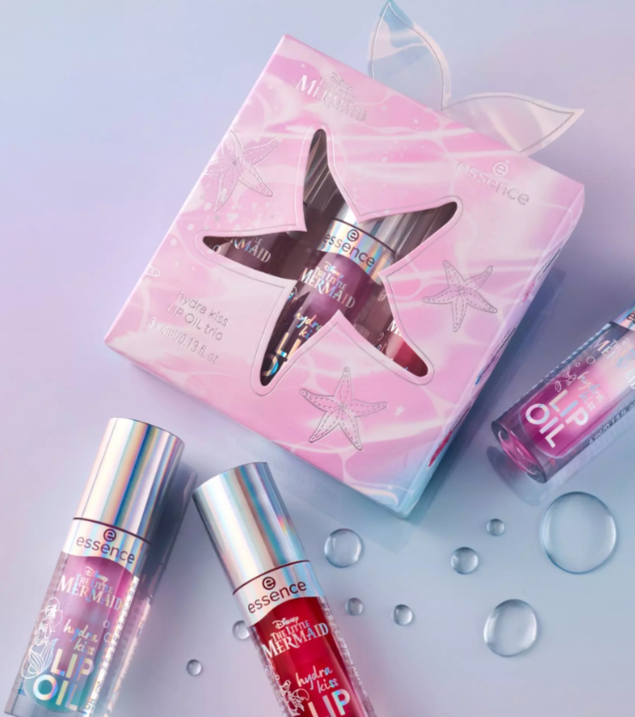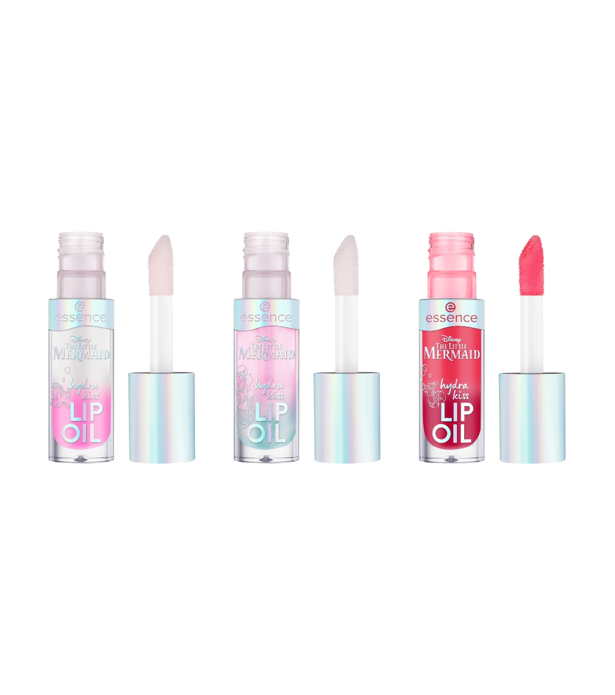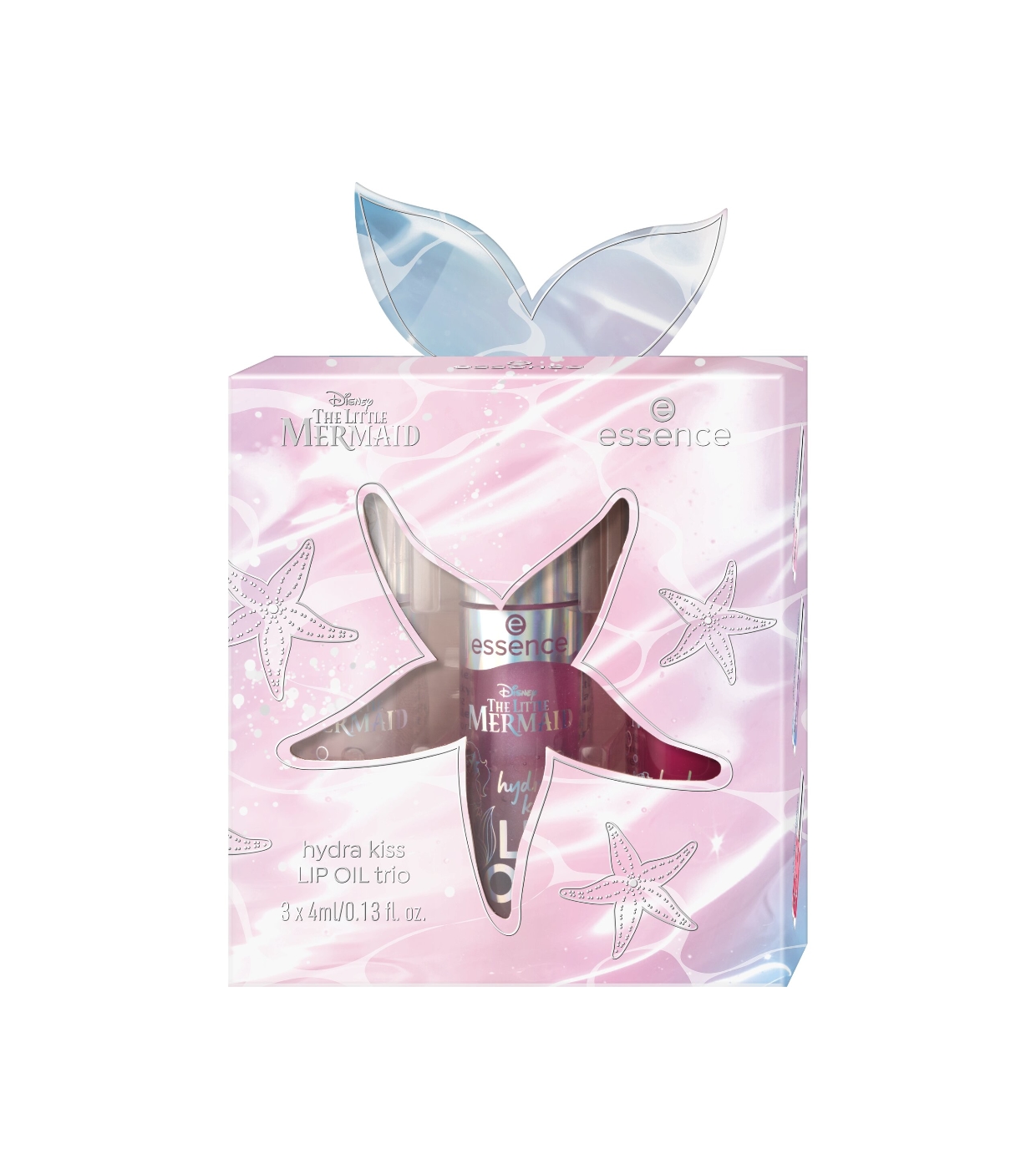 Genießen Sie weiche, glänzende Lippen mit dem Hydra Kiss Trio von Lippenölen von essence , inspiriert vom bezaubernden Universum von The Little Mermaid .