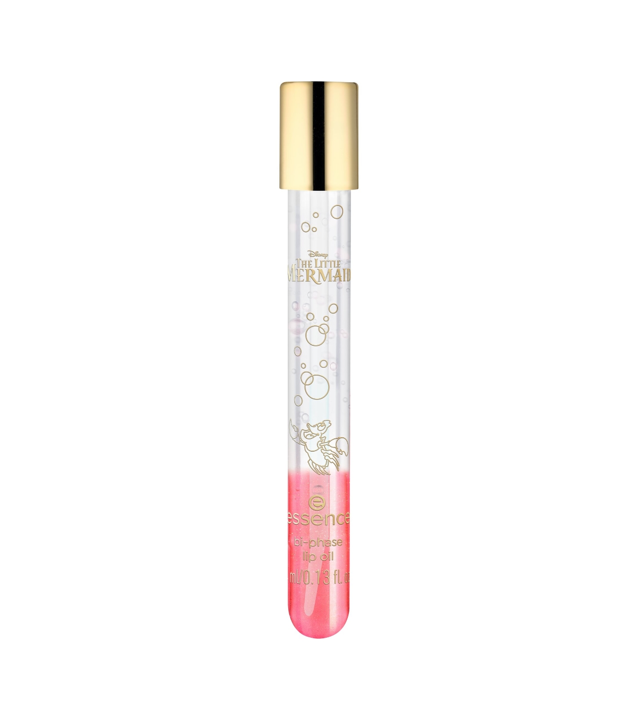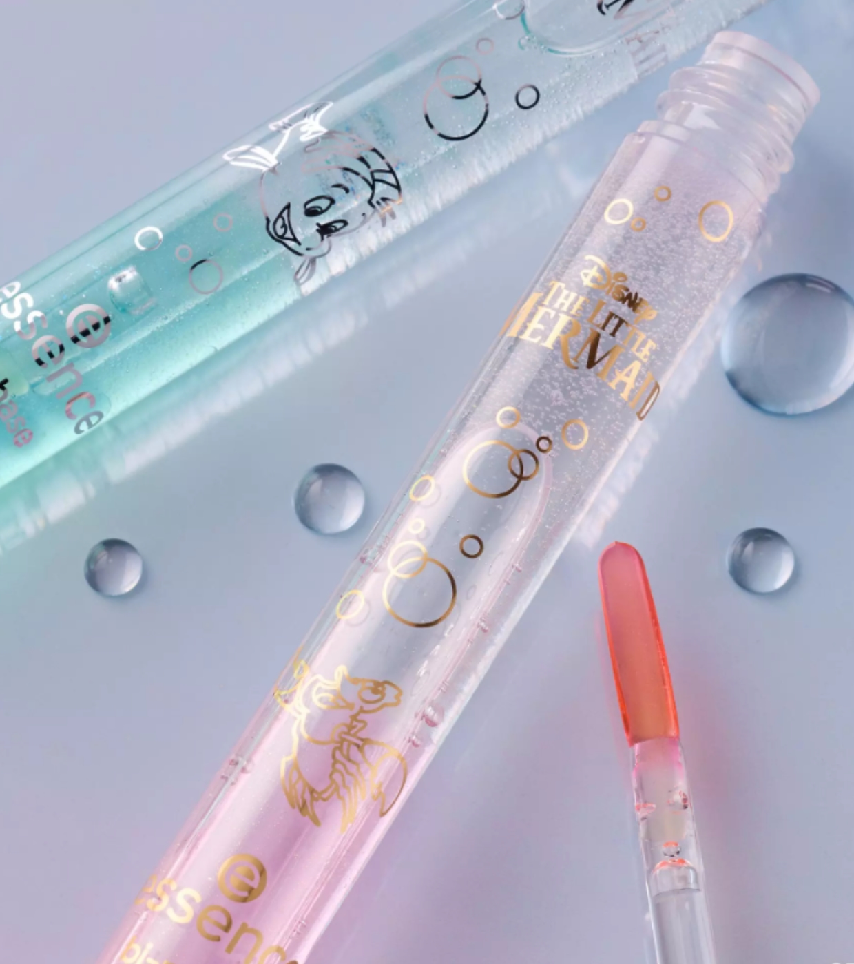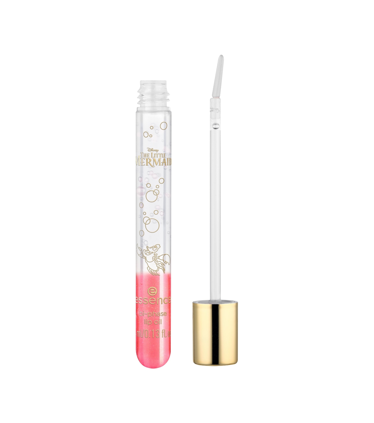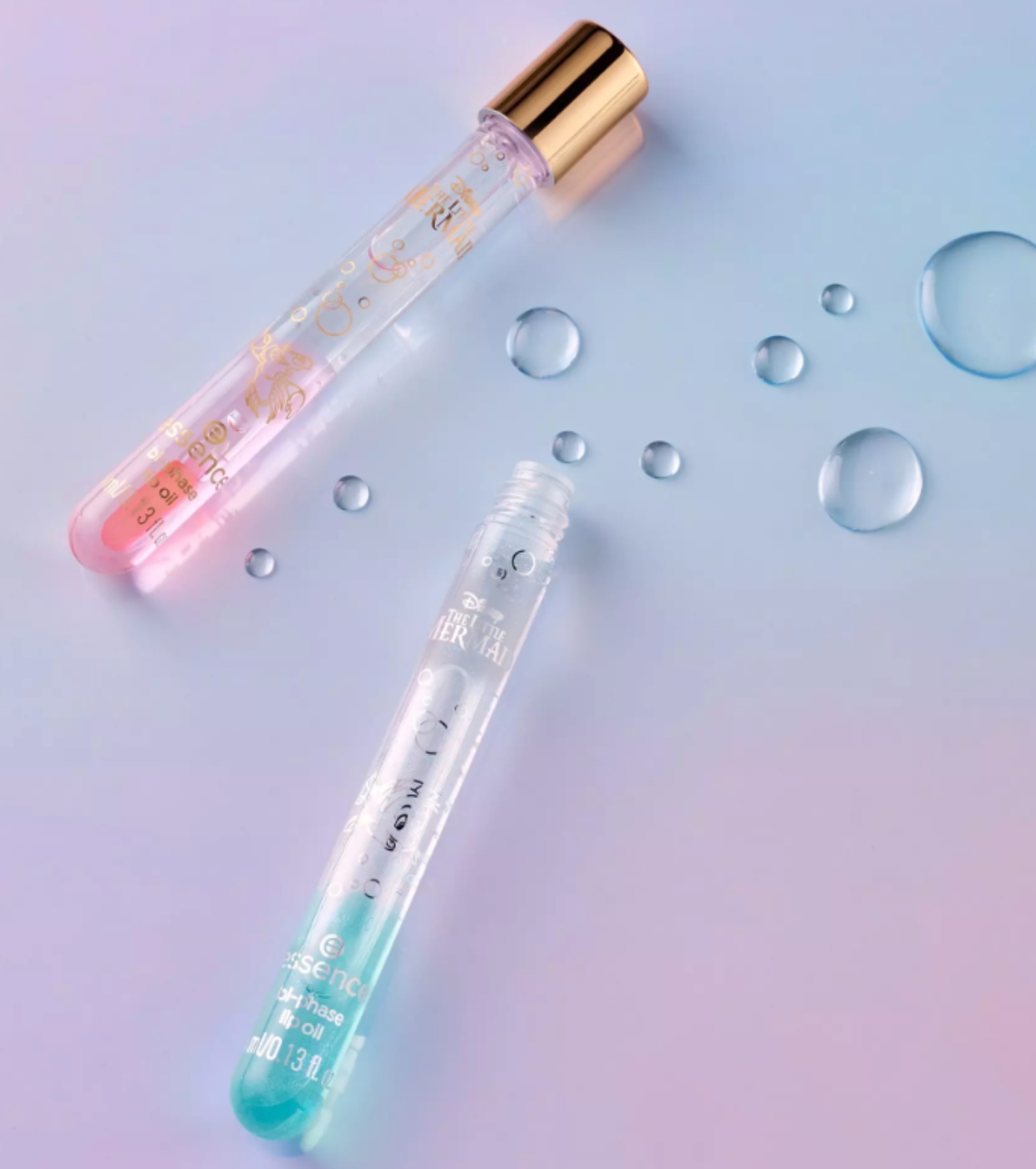 Verwöhne deine Lippen mit einem Hauch von Ozean – mit dem zweiphasigen Lippenöl aus der The Little Mermaid Kollektion von essence x Disney .