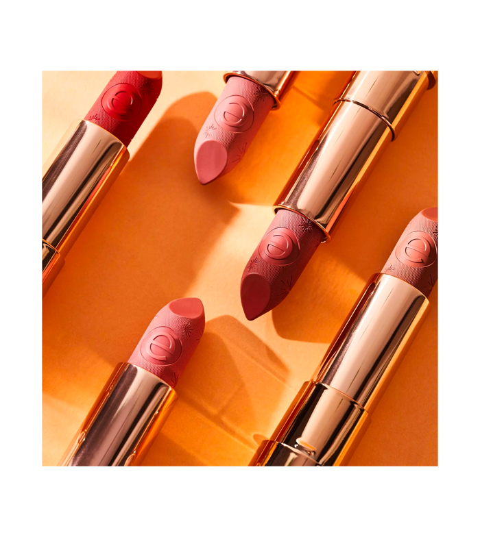 Caring SHINE essence Lippenstift ist mit veganem Kollagen und Hyaluronsäure formuliert .