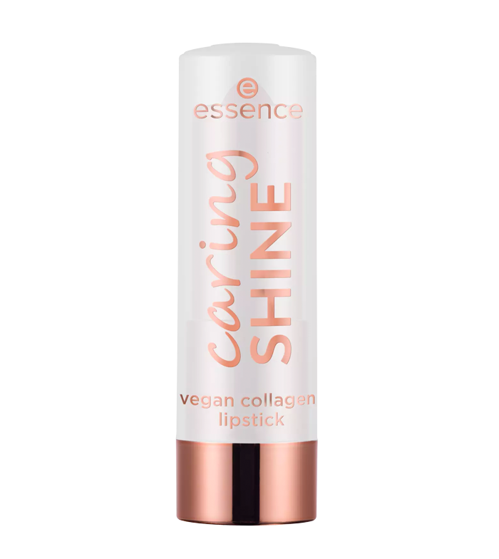 Caring SHINE essence Lippenstift ist mit veganem Kollagen und Hyaluronsäure formuliert .