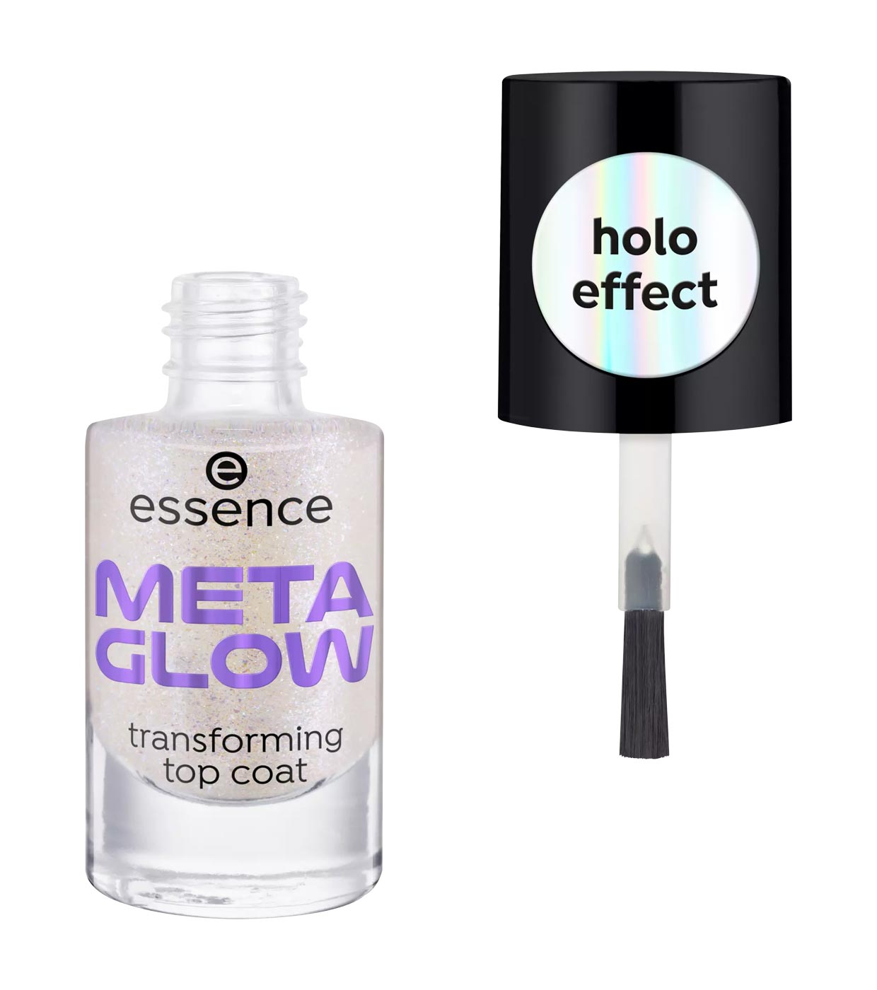 Suchen Sie einen Überlack, der Ihre Nägel in ein spektakuläres Kunstwerk verwandelt? Dann ist der essence Meta Glow Transforming Top Coat Ihr Komplize!