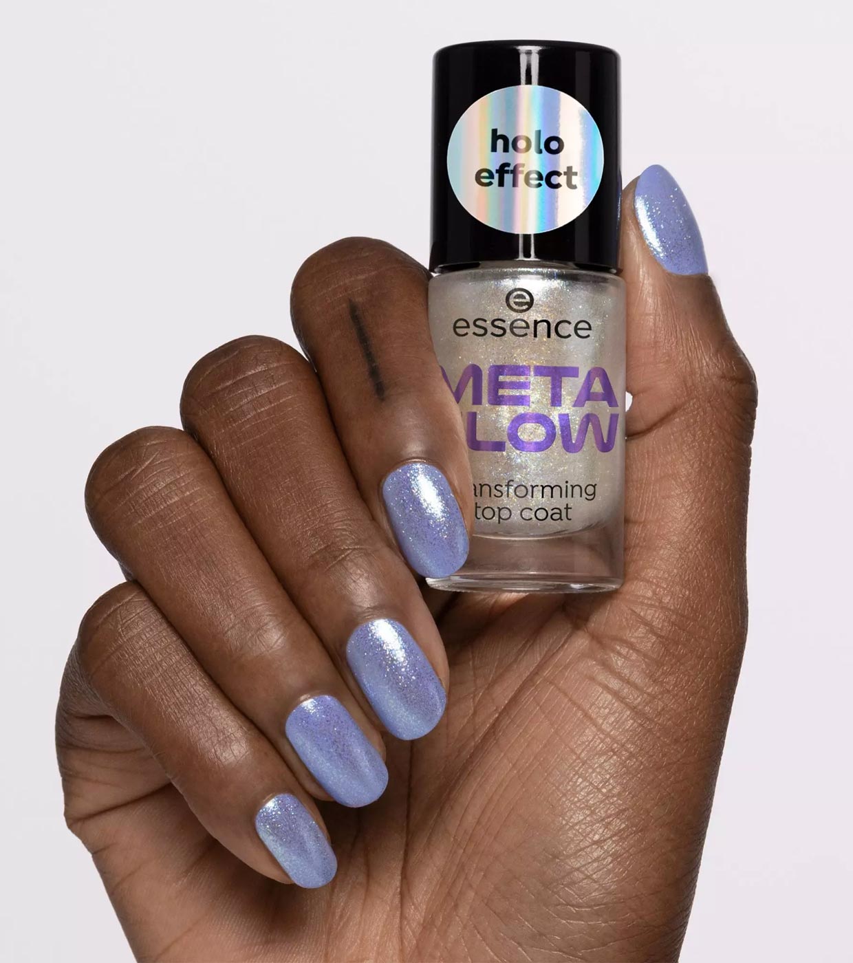 Sein halbtransparenter Glanz in Silber und Duochromblau ist vom Metaversum inspiriert und sein Soforteffekt ist ein Hingucker bei allen Nagellacken.