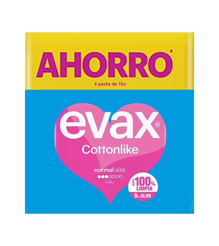 Packung mit 64 Einheiten normaler Polster mit baumwollähnlichen Flügeln von Evax.