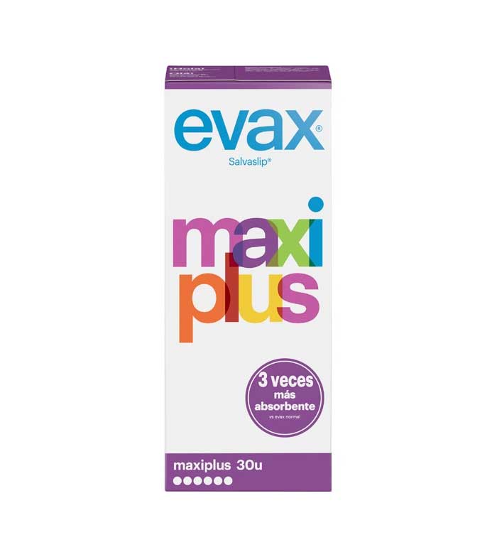 Packung mit 30 Einheiten Evax Maxi plus Slipeinlagen.