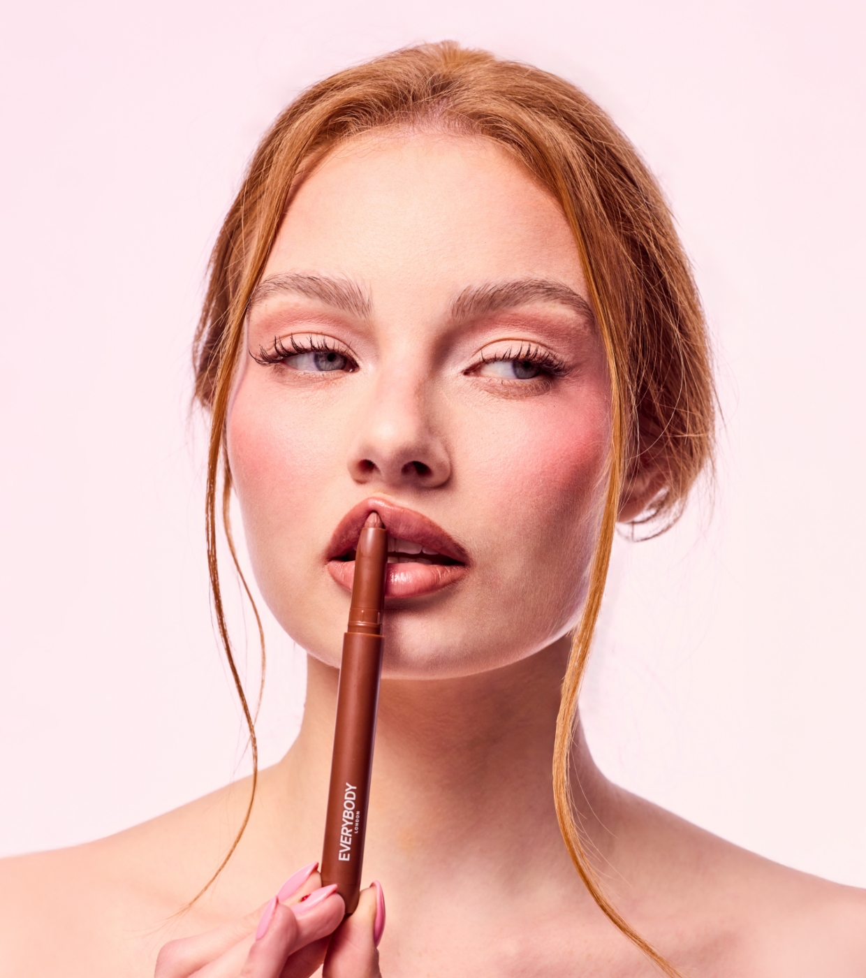 Den Blurred-Lip-Effekt erzielen Sie mit dem Lippenstift und Lipliner von Everybody London .
