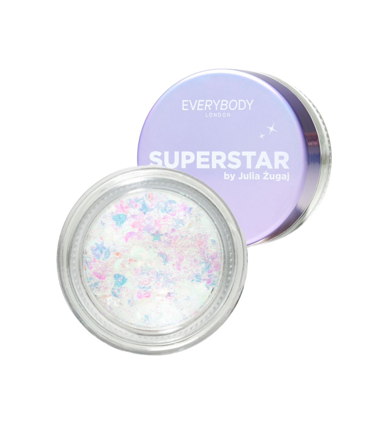 Verleihen Sie Ihrem Make-up einen magischen Glanz dank Glitter Pot Moon Dust von Everyvody London , einem mehrdimensionalen, holografischen Glitzer, der in Zusammenarbeit mit Julia Żugaj entwickelt wurde.