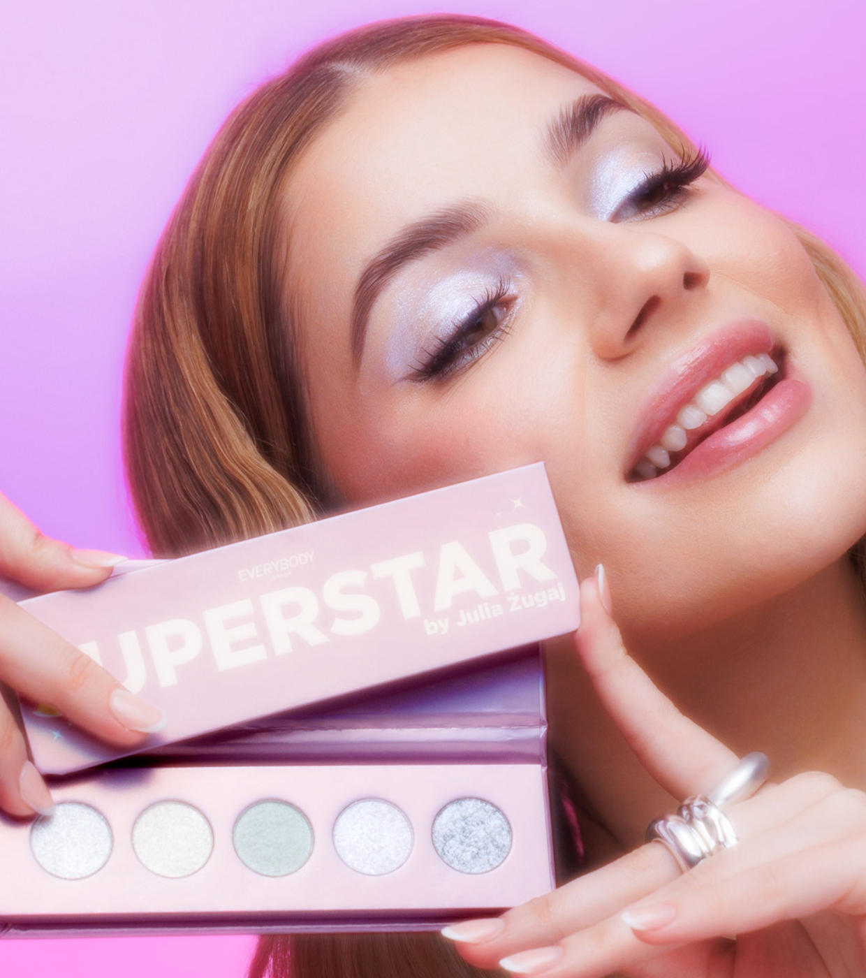Fallen Sie mit einem strahlenden und lebendigen Look auf, dank der Superstar-Lidschattenpalette von Everybody London , die in Zusammenarbeit mit der Influencerin Julia Żugaj entwickelt wurde.