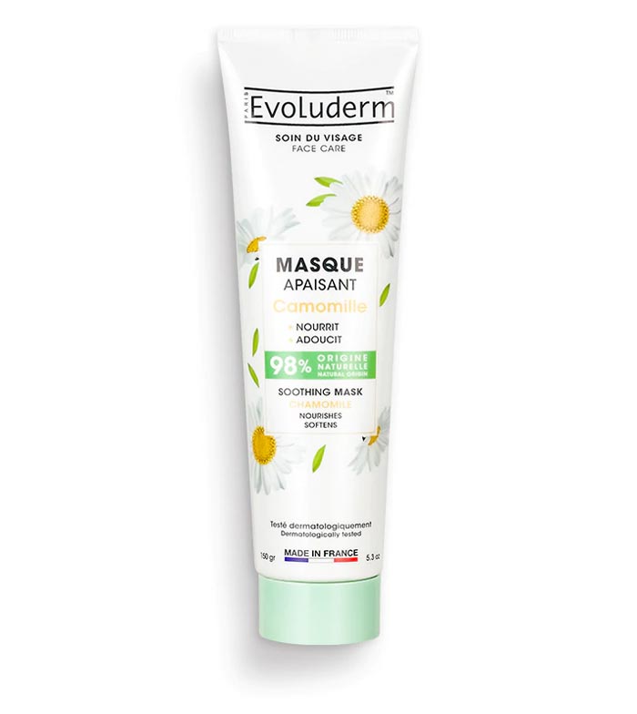 Die beruhigende Kamillenmaske mit 98 % Inhaltsstoffen natürlichen Ursprungs befreit die Haut von allen Unreinheiten und strafft die Poren.