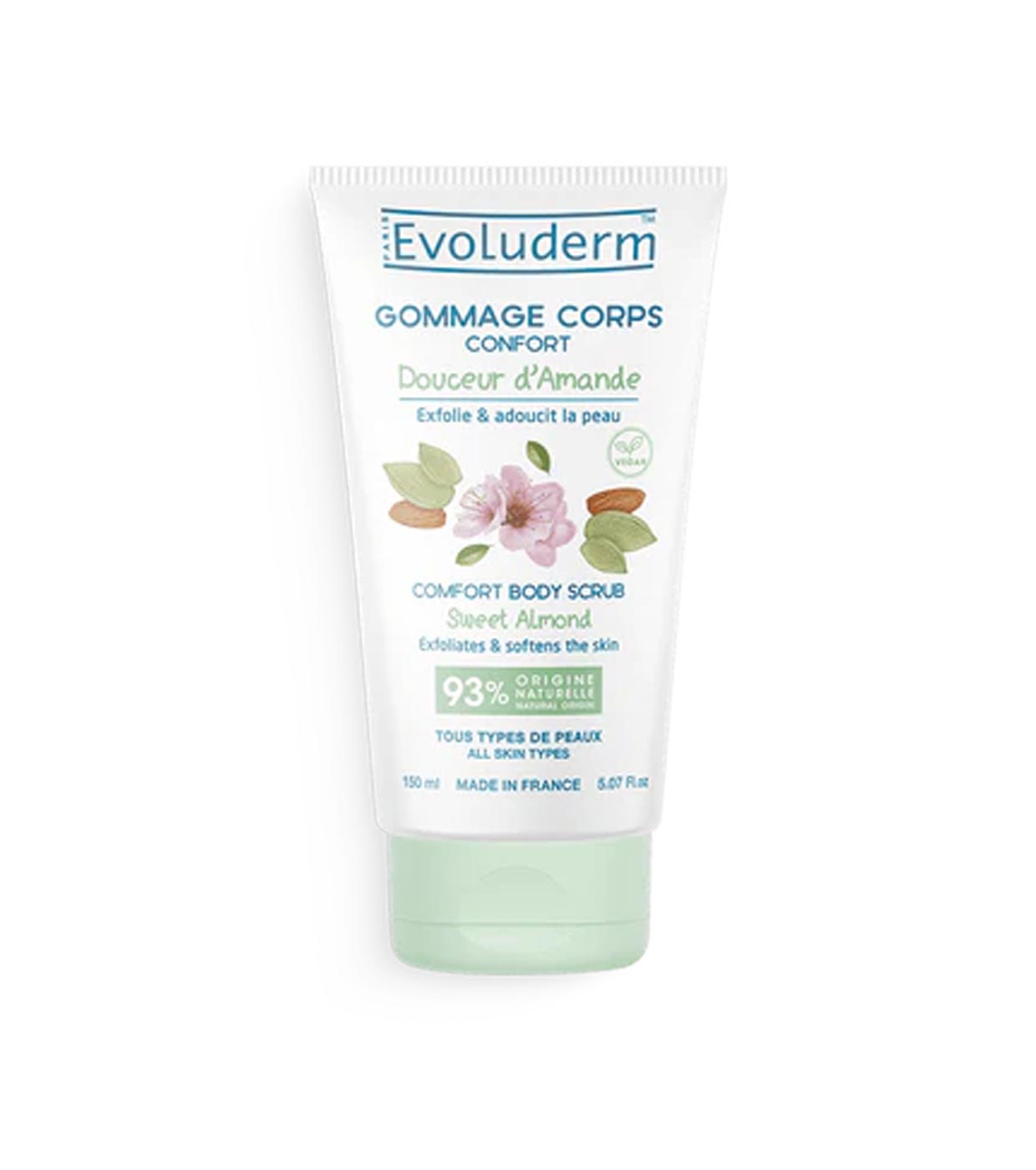 Komfort-Körperpeeling für empfindliche Haut mit Evoluderm-Mandelmilch.