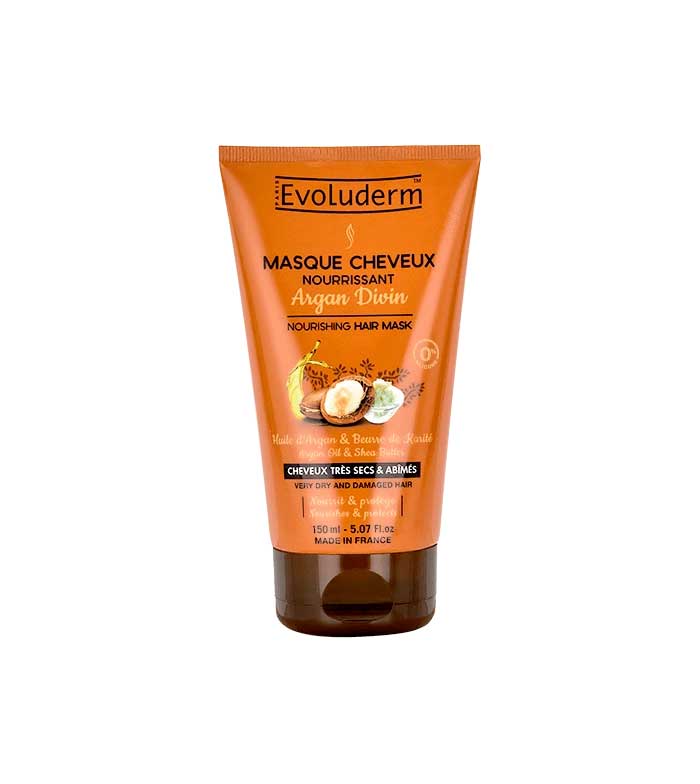Pflegende Haarmaske Argan Divin speziell von Evoluderm für sehr trockenes und strapaziertes Haar empfohlen.