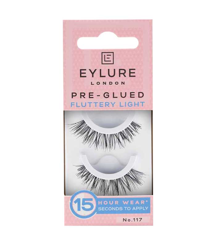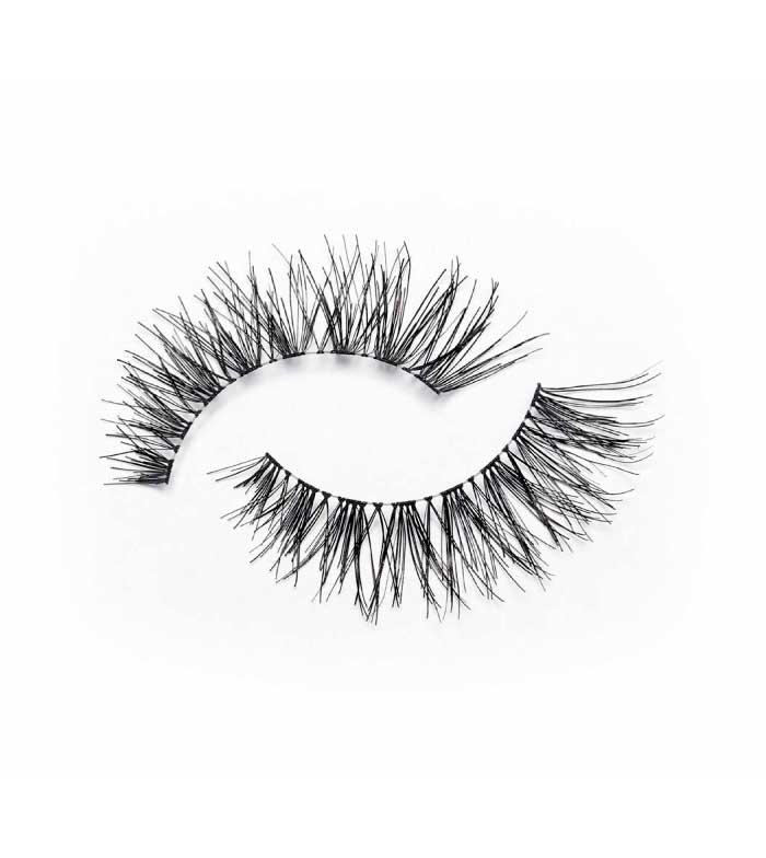 Vorgeklebte falsche Wimpern mit einem Klebeband, das Ihre Anwendung erheblich erleichtert.