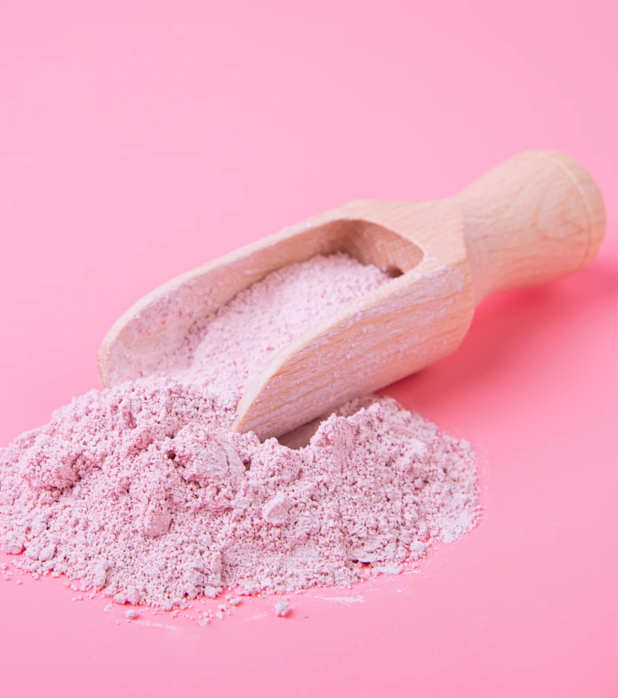 - Fein gemahlener rosa Ton + Ton reich an Kaolinmineralien