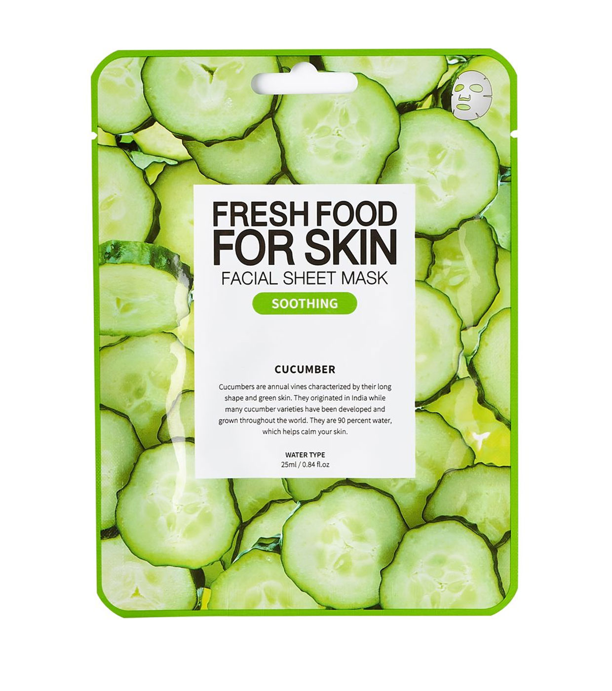 Tauchen Sie ein in Frische und Feuchtigkeit mit unserer Farm Skin Gurkenwasser-Gesichtsmaske , die zu 90 % aus erfrischendem Gurkenwasser besteht.