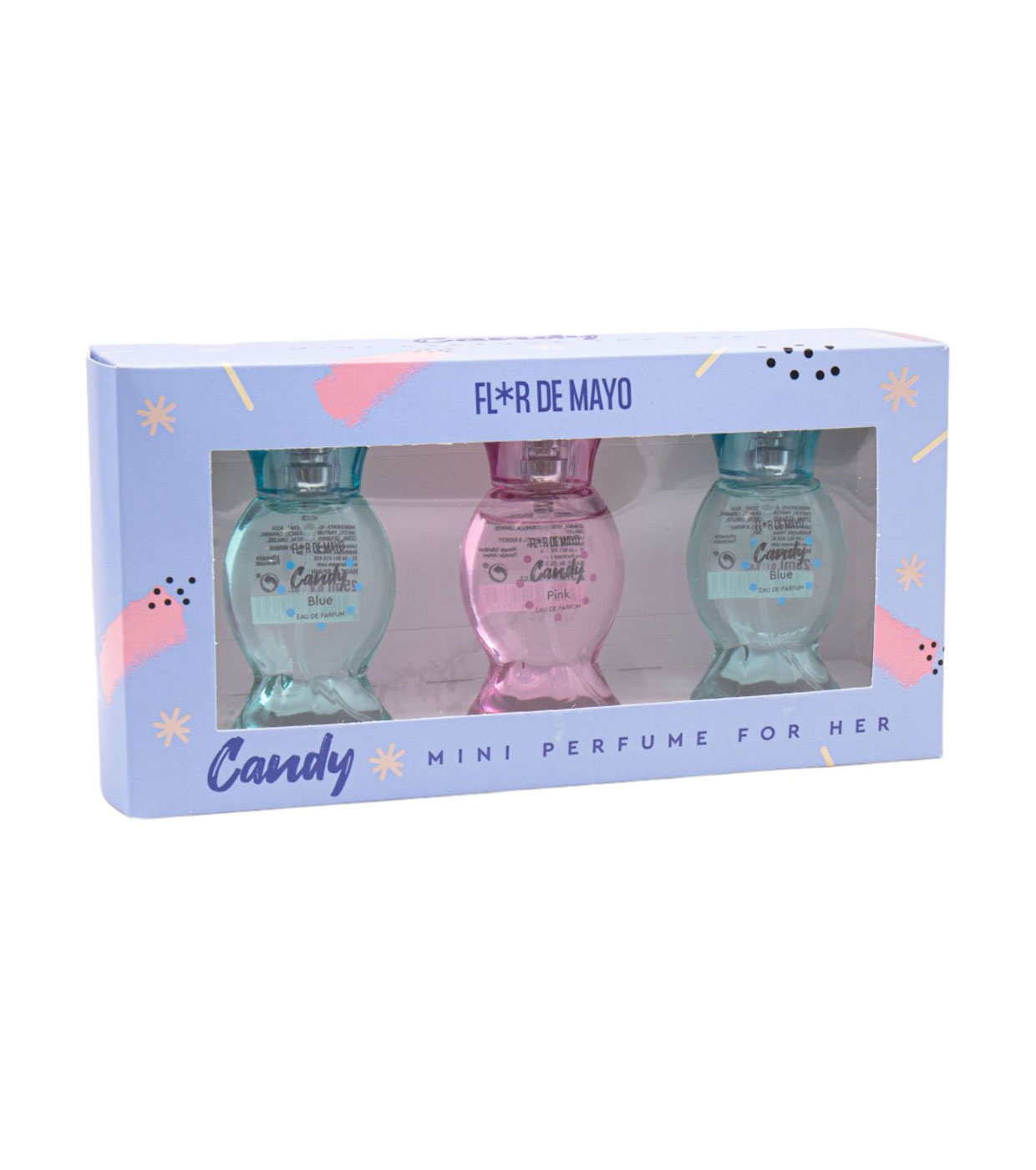 Set mit Mini-Candy-Parfüms von Flor de Mayo, perfekt zum Verschenken an jemand Besonderen.