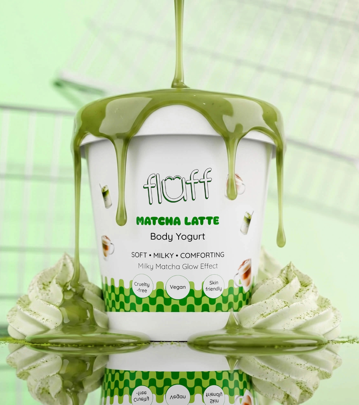 Gönnen Sie sich einen Moment der Ruhe und Pflege mit dem Matcha Latte Body Yogurt von Fluff , der die Haut mit Feuchtigkeit versorgt, weich macht und pflegt – mit einer leichten Textur und einem Spa-ähnlichen Duft.