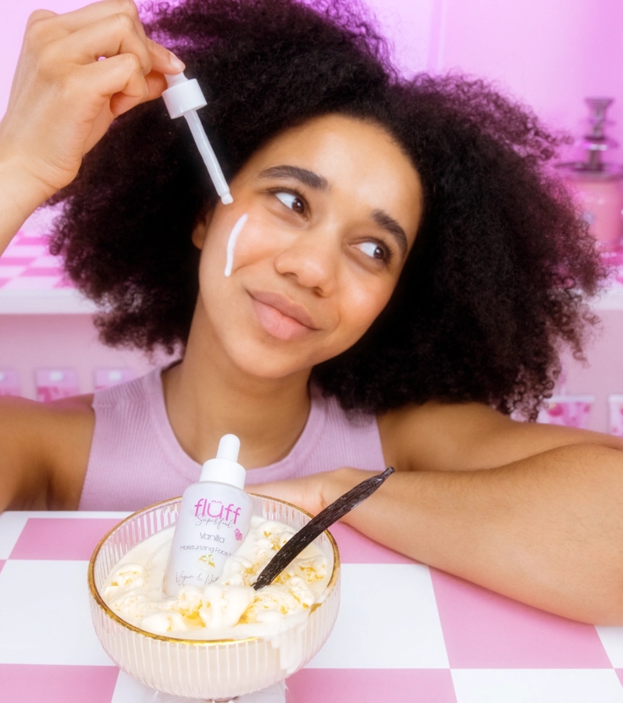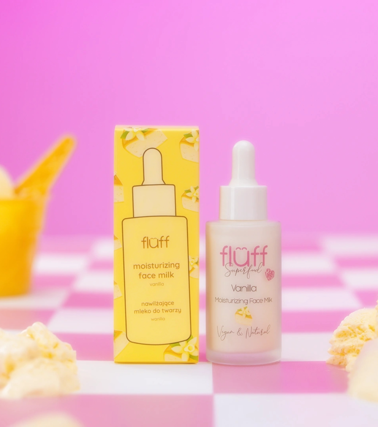 Hüllen Sie Ihre Haut in eine sanfte Liebkosung mit Fluff Vanilla Facial Milk , einer ultraleichten, mit Ceramiden angereicherten Formel, die selbst die anspruchsvollste Haut mit Feuchtigkeit versorgt, beruhigt und ihr Wohlbefinden wiederherstellt.