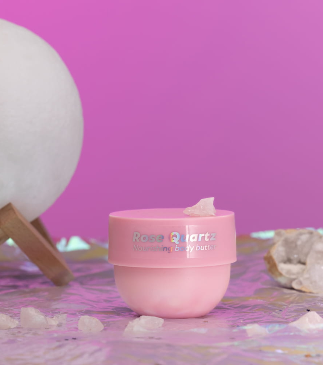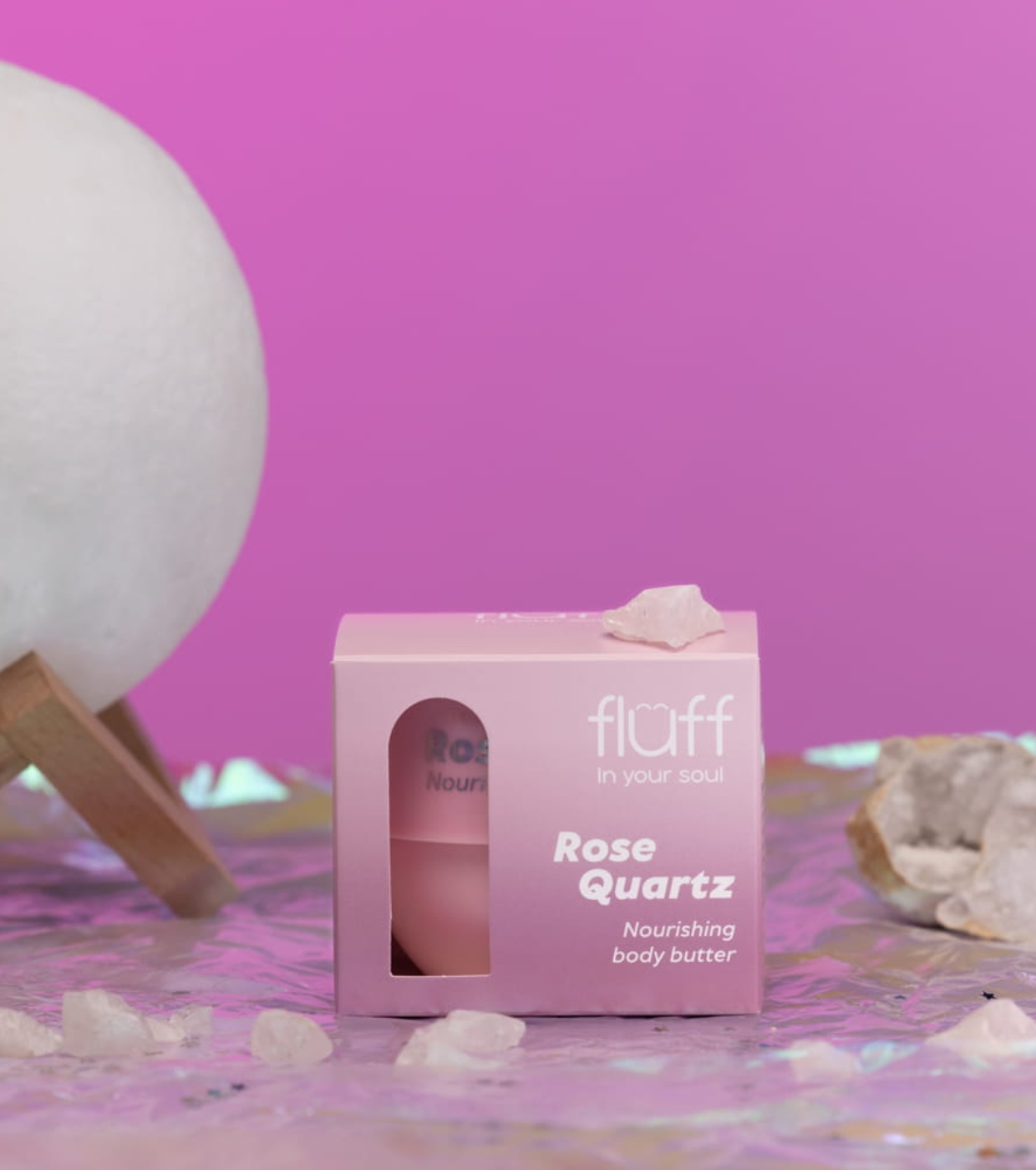 Diese nährende Körperbutter mit Rosenquarzextrakt von Fluff schmiert die Haut sanft, schützt sie vor Trockenheit und spendet tiefenwirksame Nährstoffe, die ihre Elastizität verbessern.