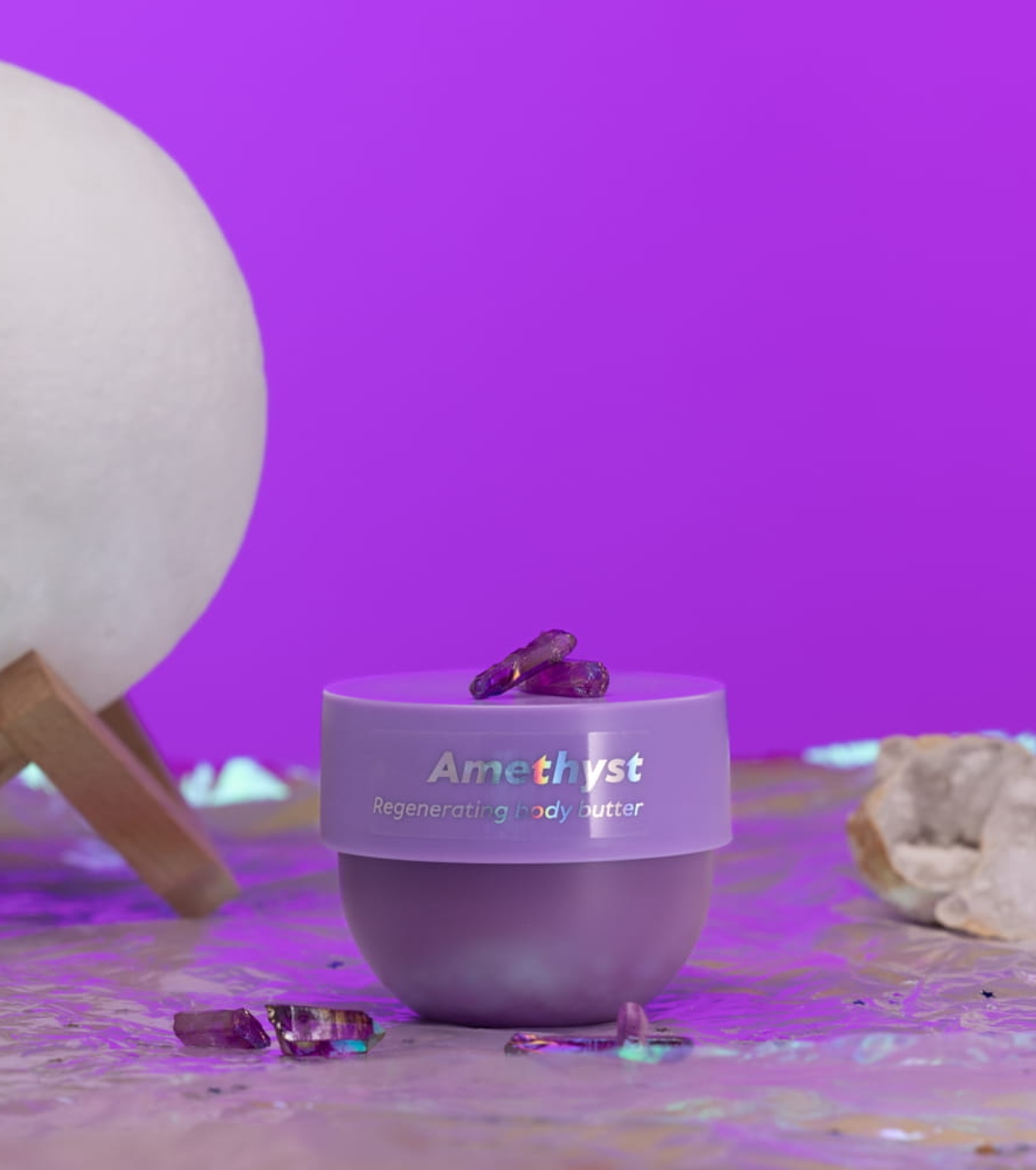 Gönnen Sie sich etwas Entspannung mit dieser Körperbutter, inspiriert von den einzigartigen Eigenschaften des Amethysts.