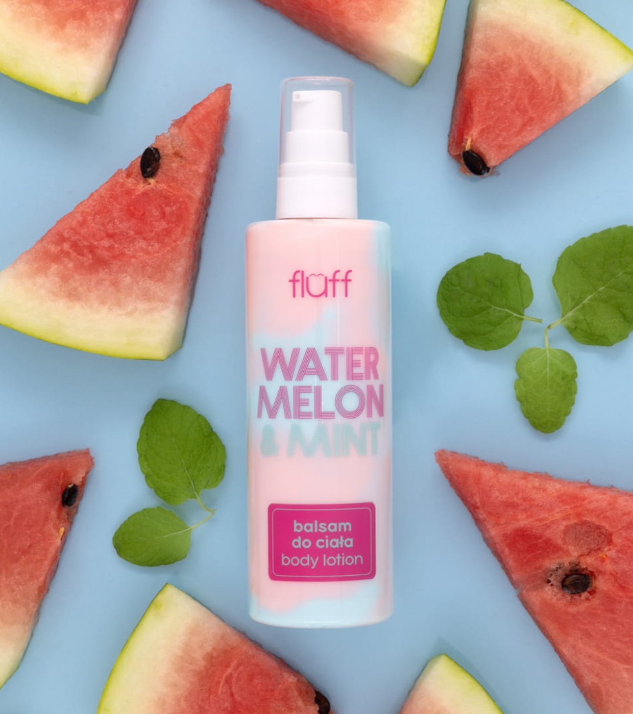 Intensive Pflege, Erfrischung an heißen Tagen und Auszeit vom Alltag. Jetzt können Sie alles in einem sensationellen Produkt haben: einer nach Wassermelone und Minze duftenden Körperlotion von Fluff .