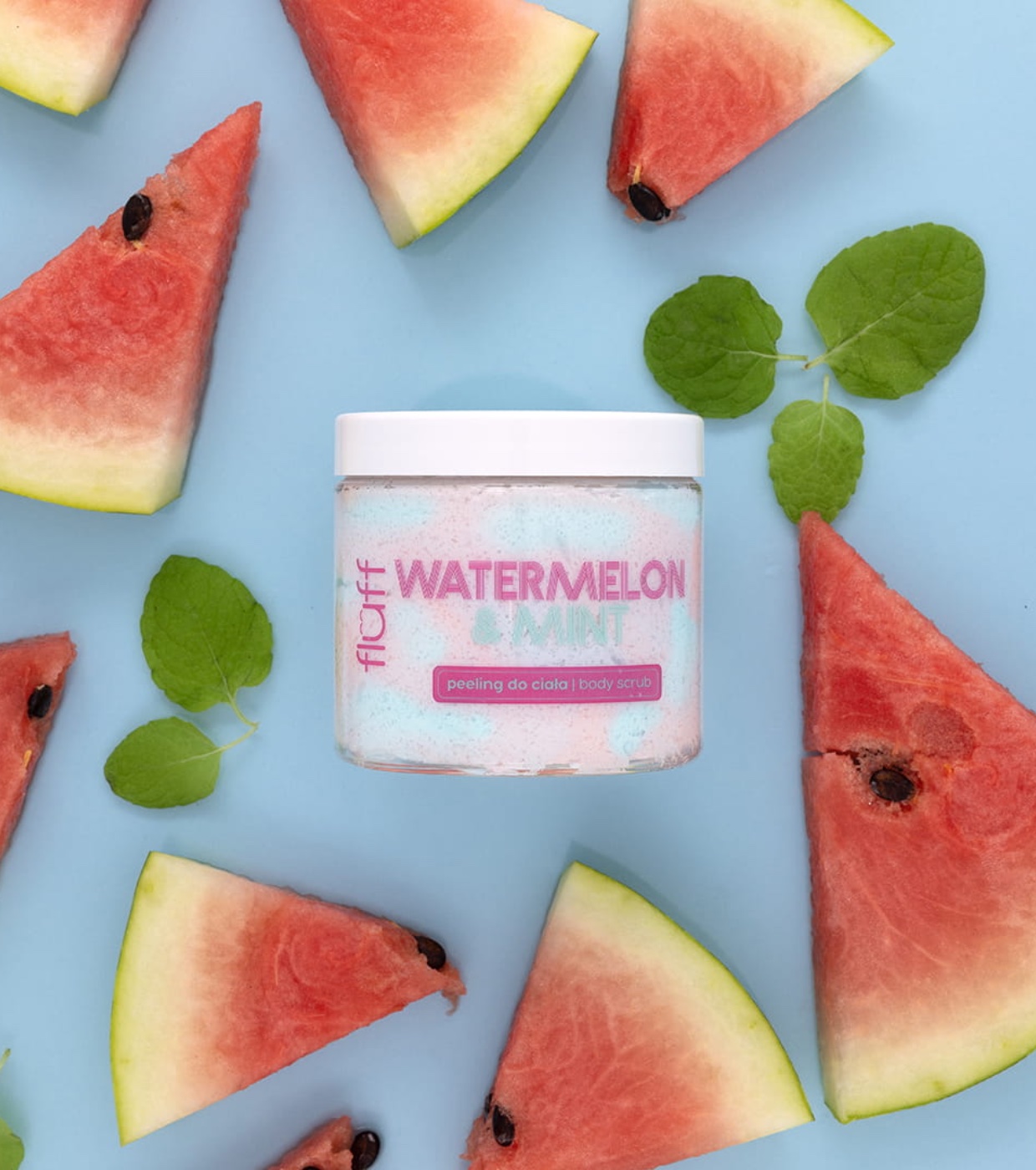 Das Watermelon & Mint Body Scrub von Fluff entfernt effektiv abgestorbene Zellen und macht die Haut weich und glatt.