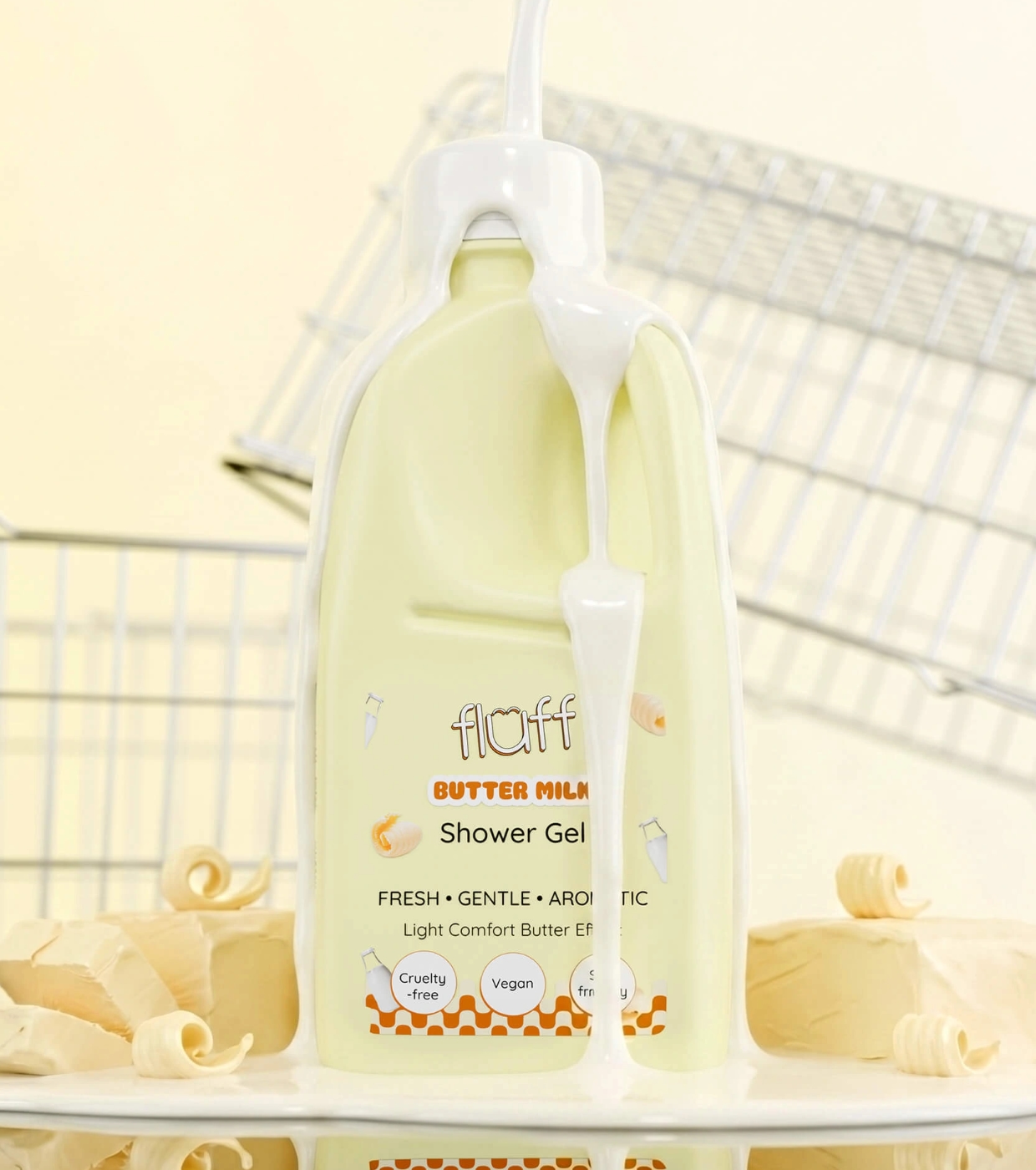 Das Butter Milk Duschgel von Fluff umhüllt Ihre Haut mit einem cremigen, süßen Duft mit einem Hauch von Vanille und verwandelt Ihre tägliche Routine in einen wahrhaft genussvollen Moment.
