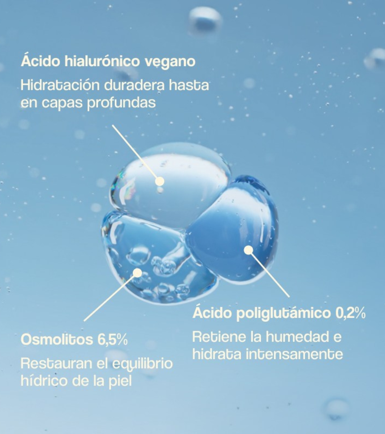 Seine leichte, gelartige Formel erfrischt die Haut sofort und hilft, die Feuchtigkeit bis zu viermal länger zu speichern als Hyaluronsäure, dank der Wirkung von PGA, einem leistungsstarken natürlichen Polymer, das aus der Sojafermentation gewonnen wird.