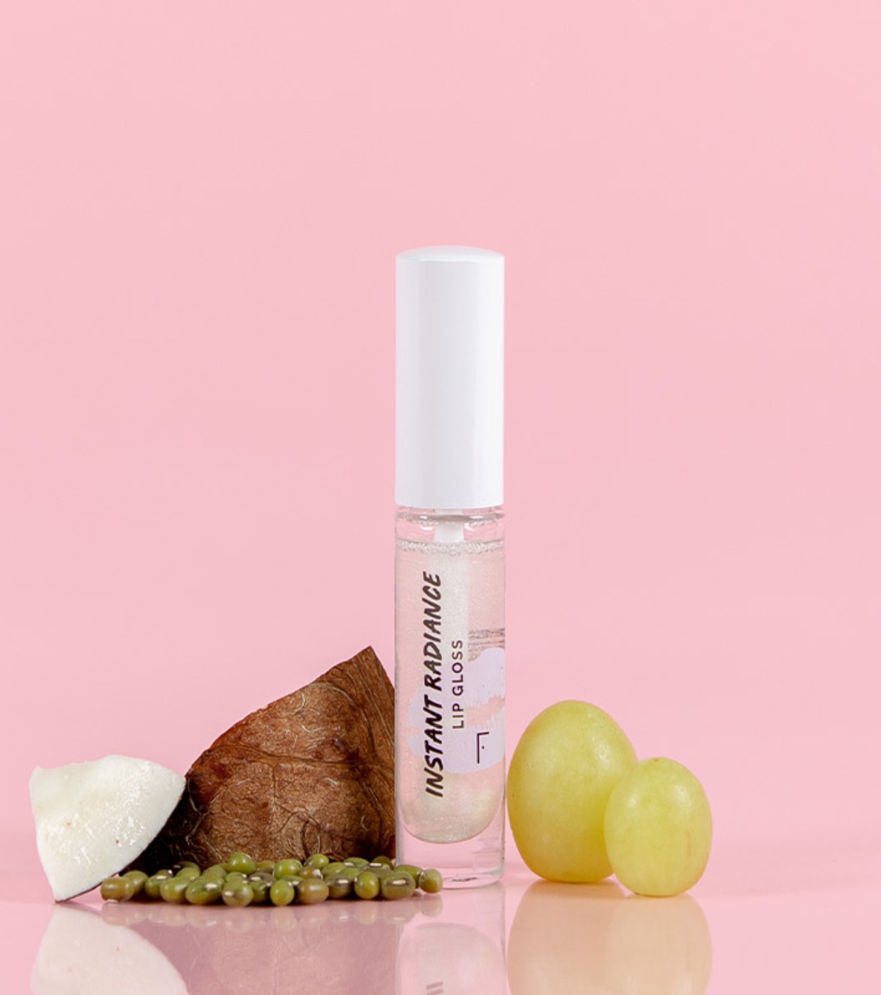 Der Lipgloss Instant Radiance Lip Gloss erzielt nur mit natürlichen Inhaltsstoffen wie Bio-Kokosöl, Traubenöl, Bio-Jojoba und Bio-Aprikosenbutter ein glänzendes Finish mit dezentem Perleffekt und eine weiche, angenehme und angenehme Textur für die Lippen.