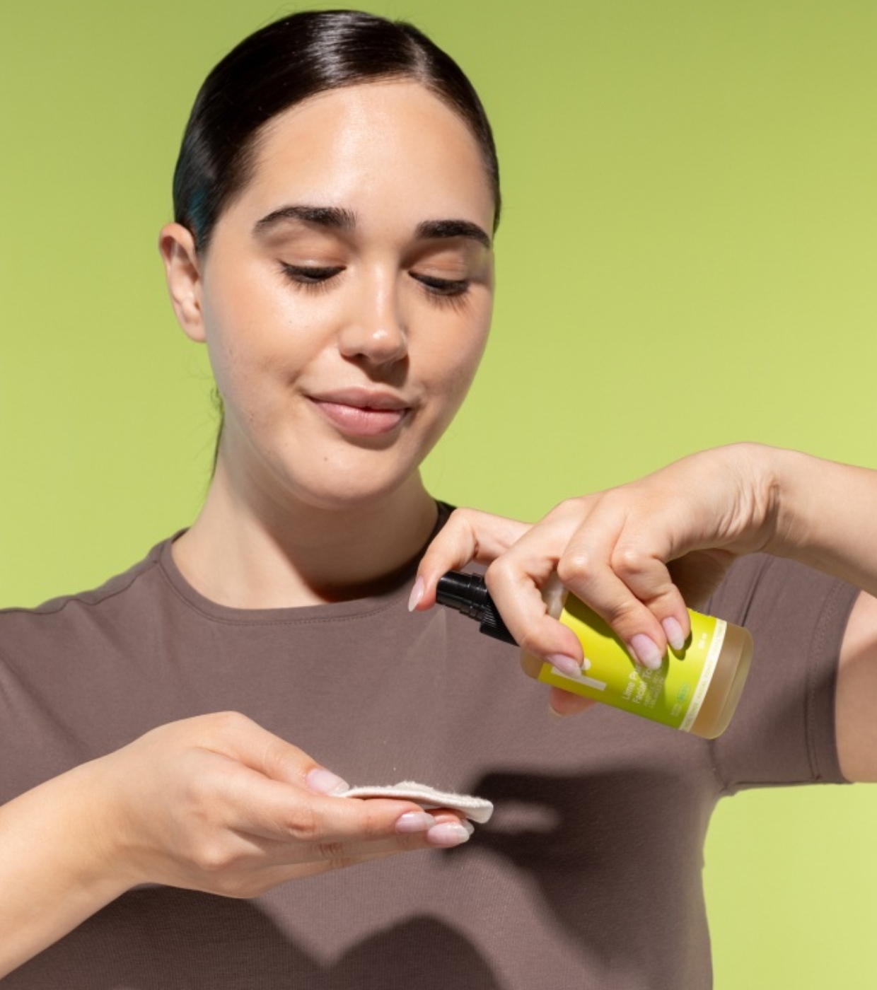 2. Sprühen Sie den Toner 3 bis 4 Mal auf ein Wattepad, vorzugsweise ein wiederverwendbares Pad.