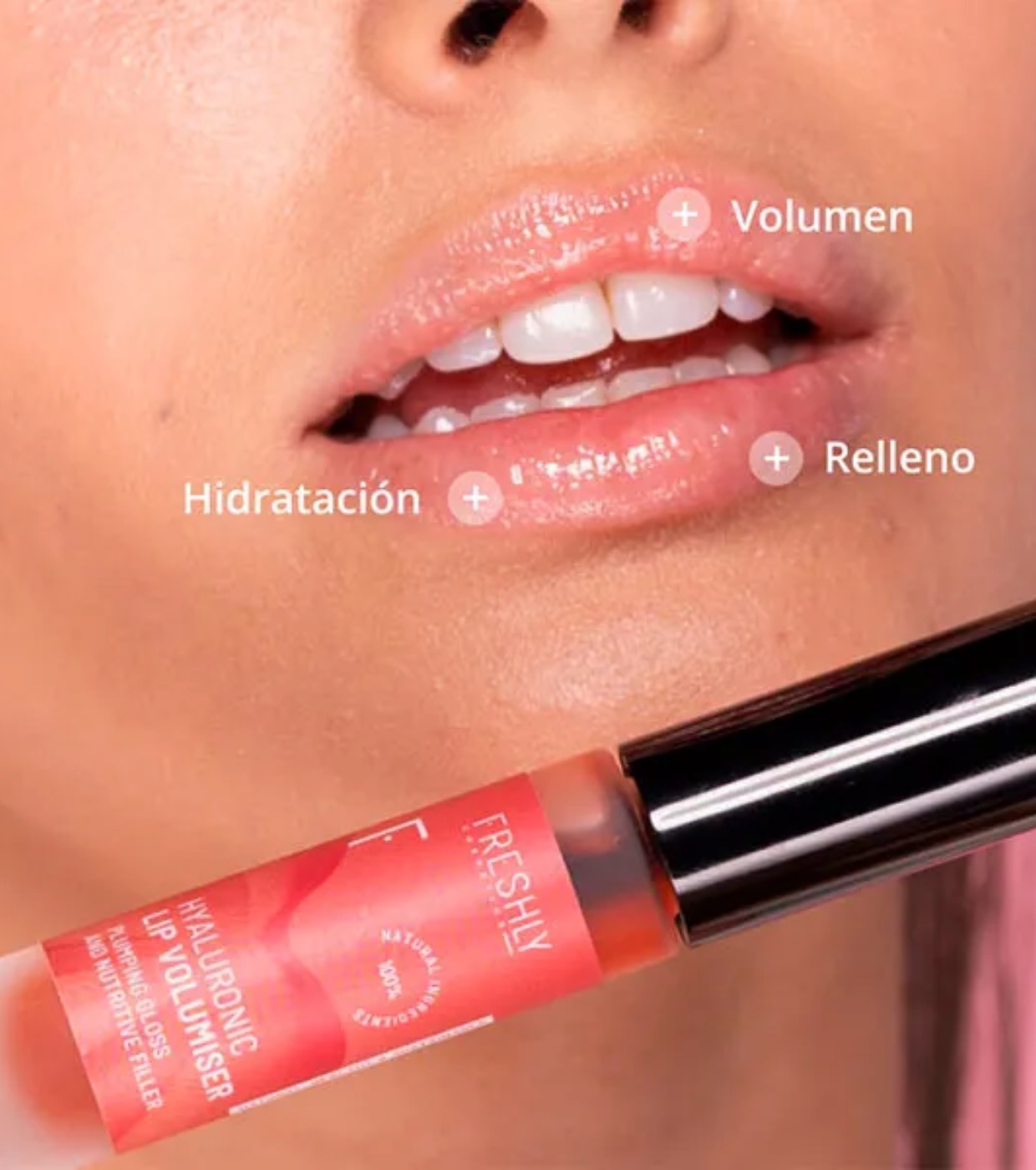 Ein 100 % natürlicher Lippenvolumenspender, der Lippenfalten auffüllt, Fältchen glättet, die Haut von innen weich macht und mit Feuchtigkeit versorgt und sie von außen schützt.
