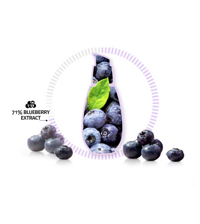 Vaccinium Angustifolium (Blueberry) Fruit Extract (71%), Glycereth-26, Water, Butylene Glycol, Methylpropanediol, PEG/PPG-17/6 Copolymer, 1,2-Hexanediol, Betaine, Diglycerin, Hydroxyethyl Urea, Bis-PEG-18 Methyl Ether Dimethyl Silane, Panthenol, PEG-60 Hydrogenated Castor Oil, Phenoxyethanol, Acrylates/C10-30 Alkyl Acrylate Crosspolymer, Dimethicone, Lecithin, Tromethamine, PEG-6 Methyl Ether, Hydroxyethyl Acrylate/Sodium Acryloyldimethyl Taurate Copolymer, Ethylhexylglycerin, Xanthan Gum, Biosaccharide Gum-1, Disodium EDTA, Fragrance, Polysorbate 60, Sorbitan Isostearate, BHT, Coco-Caprylate/Caprate, Prunus Armeniaca (Apricot) Kernel Oil, Vitis Vinifera (Grape) Seed Oil, CI 60730, Citrus Paradisi (Grapefruit) Seed Oil, Mangifera Indica (Mango) Seed Oil, Punica Granatum Seed Oil, Solanum Lycopersicum (Tomato) Seed Oil, Tocopherol.