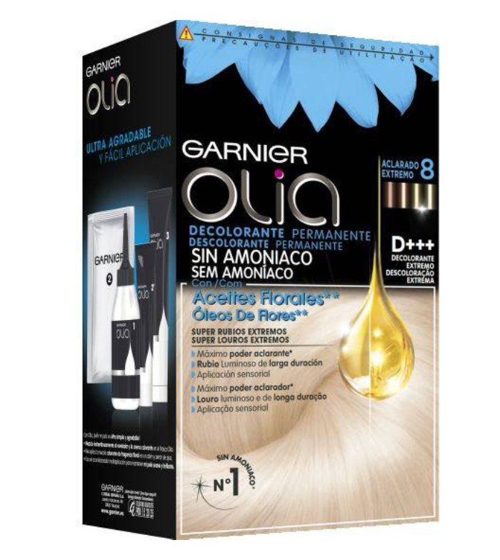 La Decoloración Permanente Olia está enriquecida con aceite, la fórmula logra un aclarado extremo para un rubio intenso: