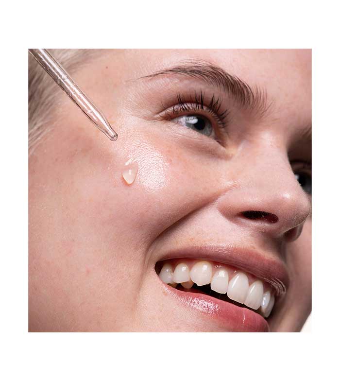 Verwenden Sie das feuchtigkeitsspendende Serum morgens und abends, bevor Sie eine feuchtigkeitsspendende Gesichtscreme auftragen. Tragen Sie mit Hilfe der Pipette eine Dosis auf die Fingerspitzen auf und massieren Sie die zuvor gereinigte Haut um Gesicht und Augen sanft ein.
