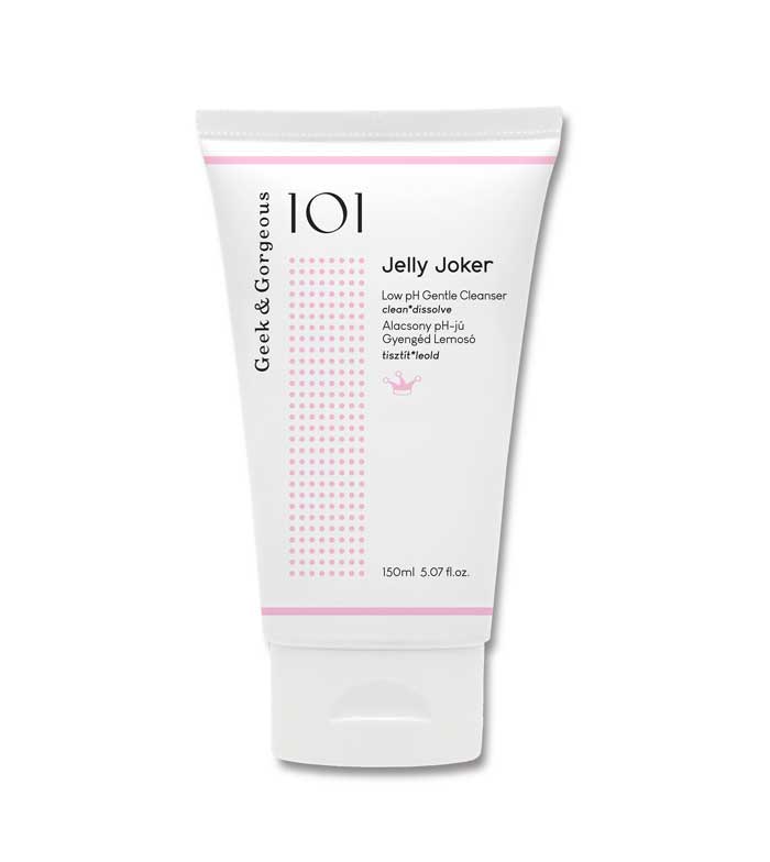 Sanfter Gesichtsreiniger Jelly Joker von Geek & Gorgeous mit einer super-seidenen, geleeartigen Textur und Gelächter, entwickelt, um die Haut gründlich zu reinigen, ohne sie auszutrocknen oder die Hautbarriere zu verändern.