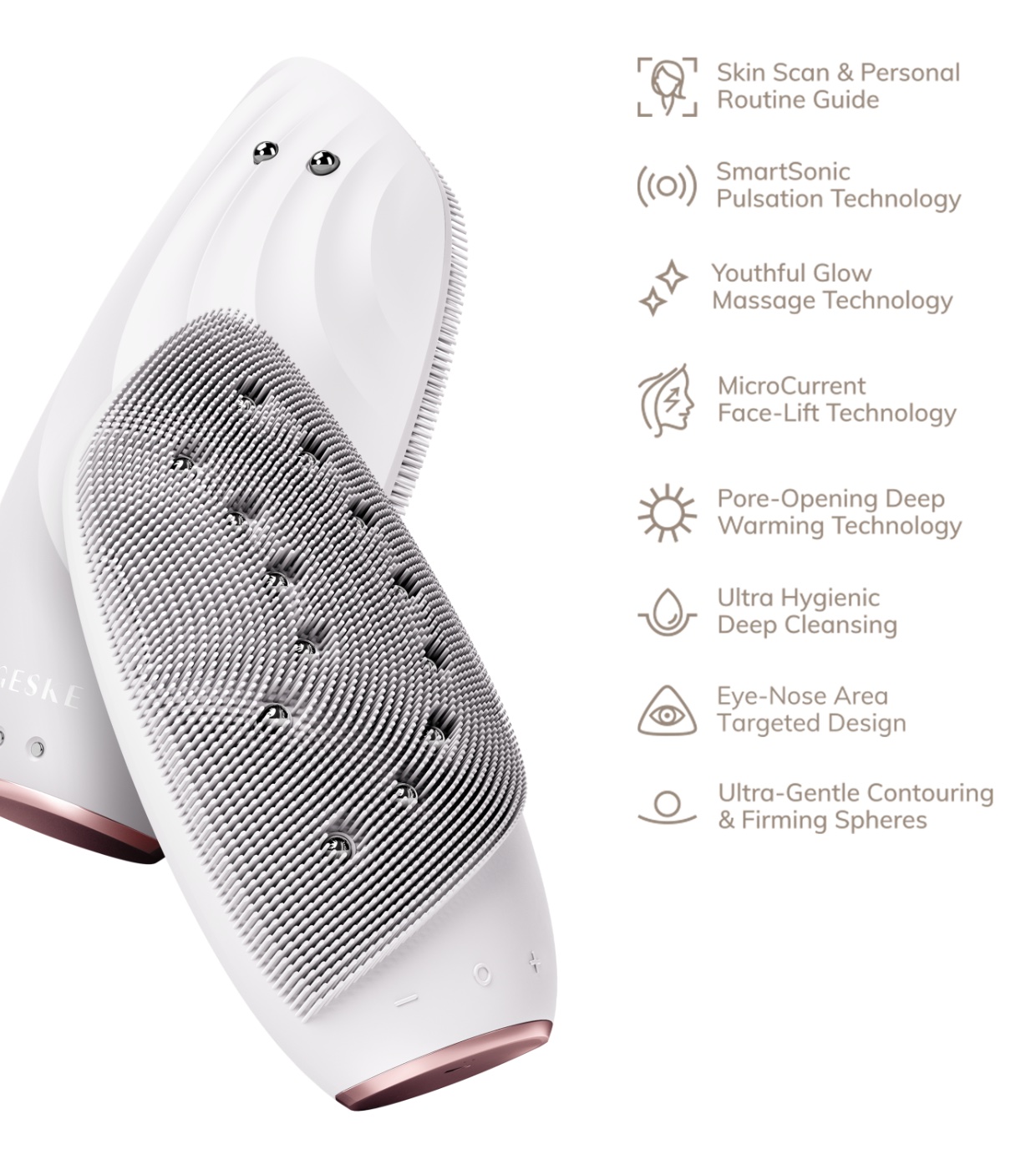 Genießen Sie die SmartSonic-Technologie mit über 8.000 Schlägen pro Minute, die MicroCurrent-Massage- und Facelift-Funktionen für straffe, jugendliche Haut.