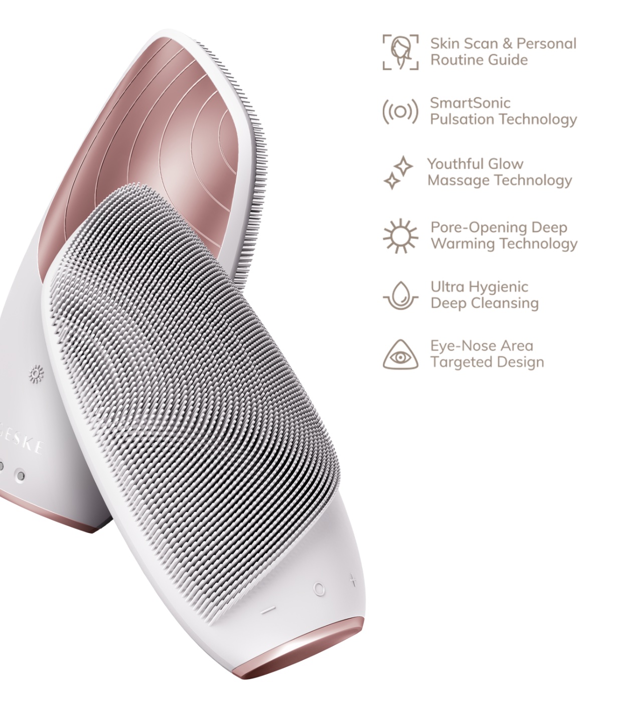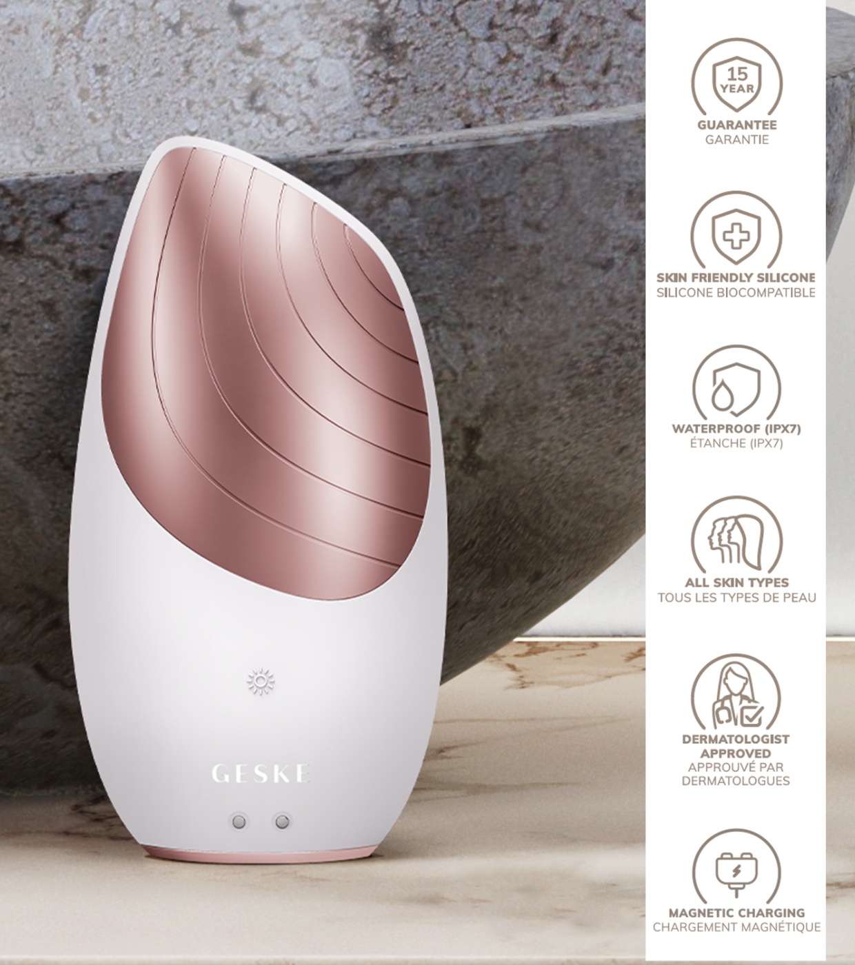 GESKE – Gesichtsreinigungs- und Massagebürste Sonic Thermo 6 in 1 – Weiß-Roségold