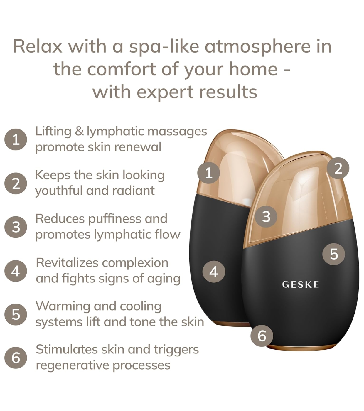 Mit dem Geske Augen- und Gesichtsmassagegerät verwandeln Sie Ihre Gesichtspflege-Routine in eine echte Spa-Behandlung für zu Hause und erhalten in nur wenigen Minuten strahlende, frische und revitalisierte Haut.