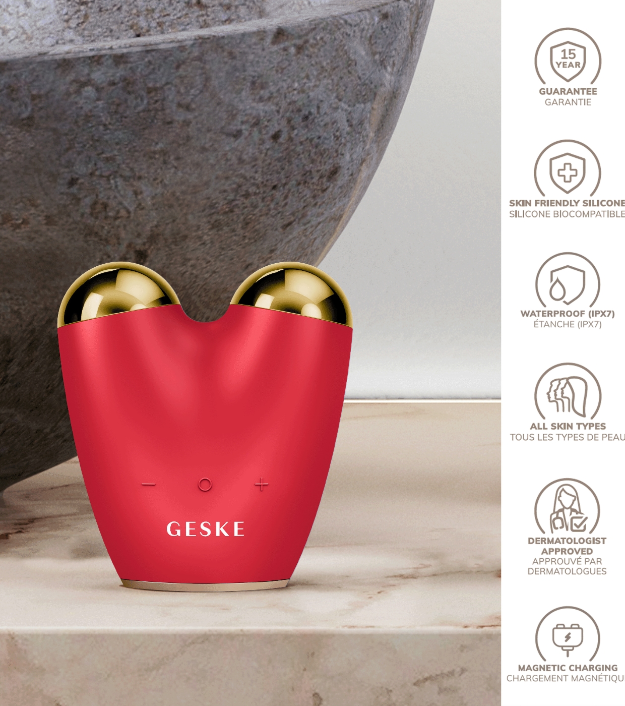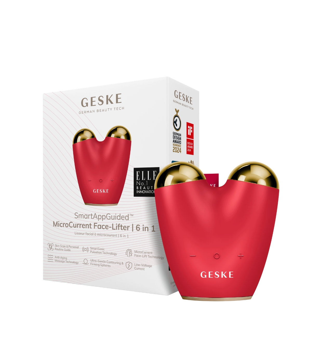 Erzielen Sie ein strafferes, konturierteres Gesicht mit dem innovativen Microcurrent Face-Lifter 6 In 1 von GESKE .