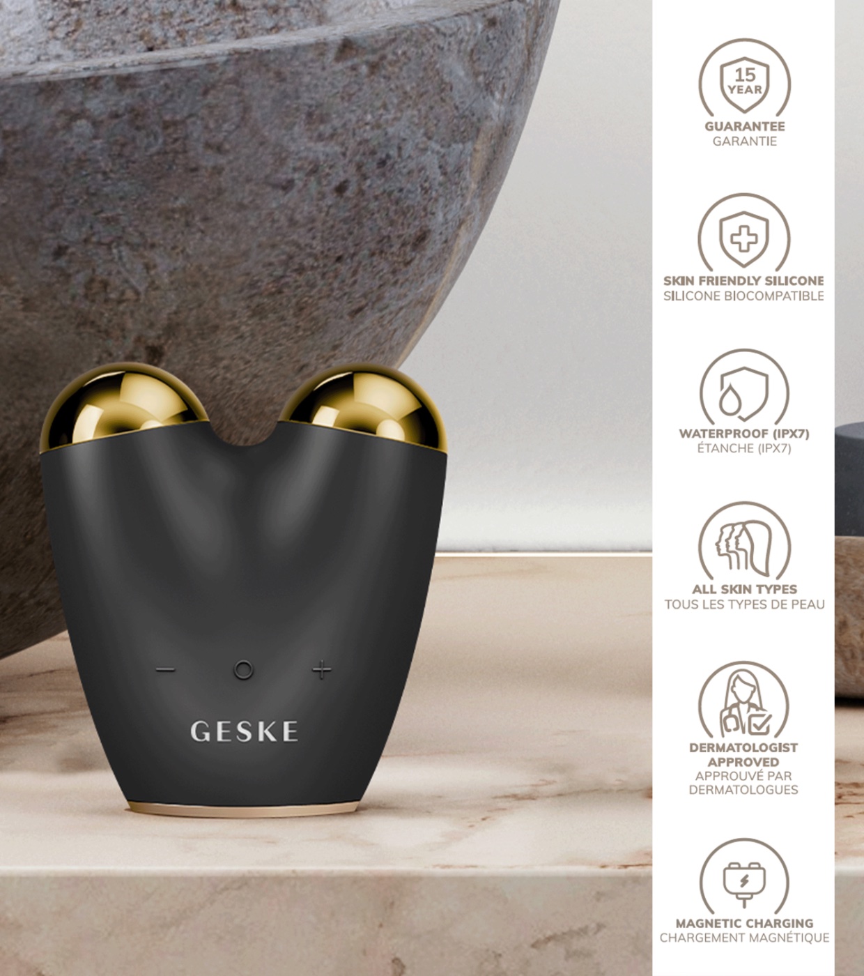 Erzielen Sie ein strafferes, konturierteres Gesicht mit dem innovativen Microcurrent Face-Lifter 6 In 1 von GESKE .