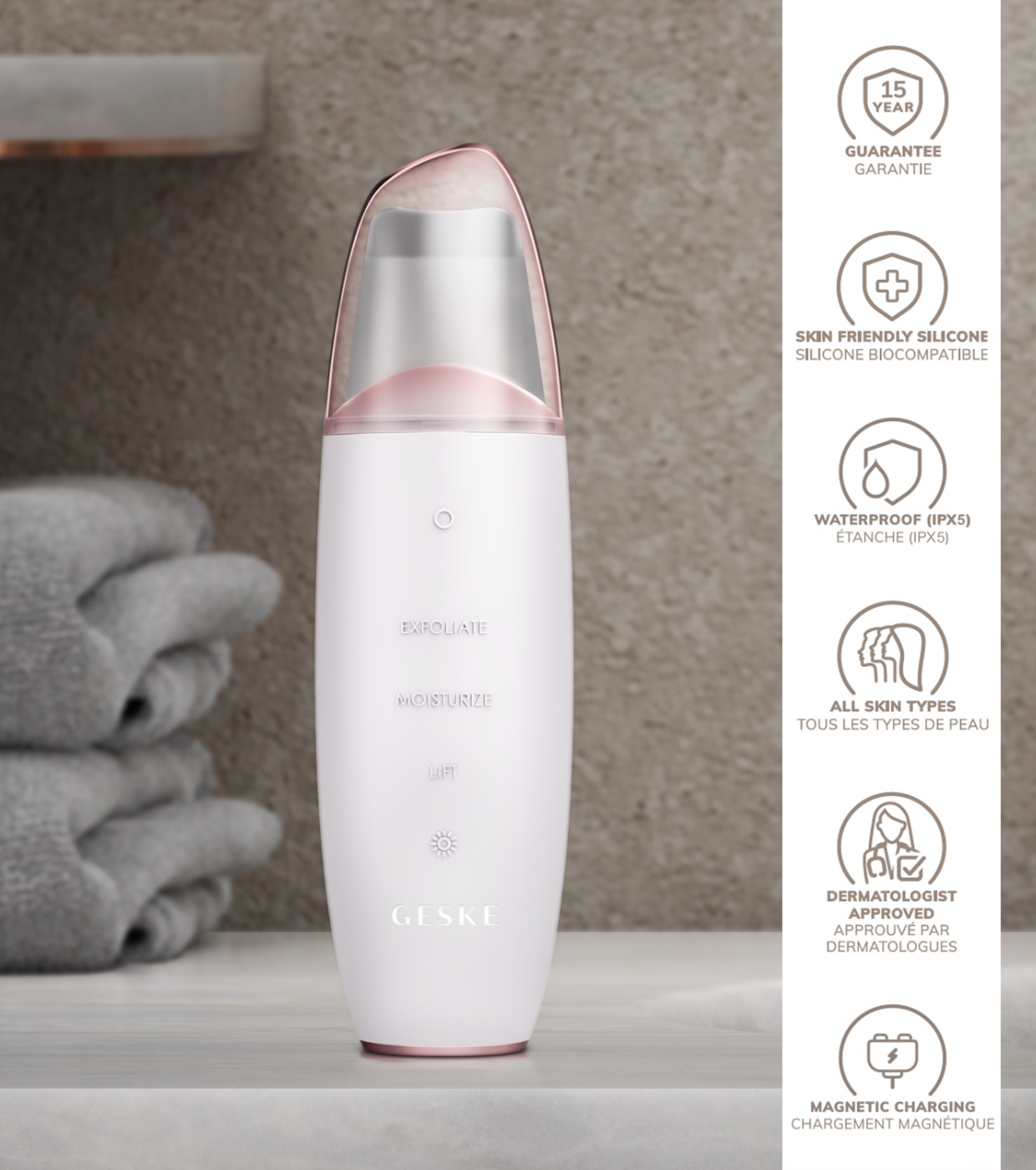 GESKE – Reiniger MicroCurrent Skin Scrubber & Blackhead Remover 9 in 1 – Weißes Roségold