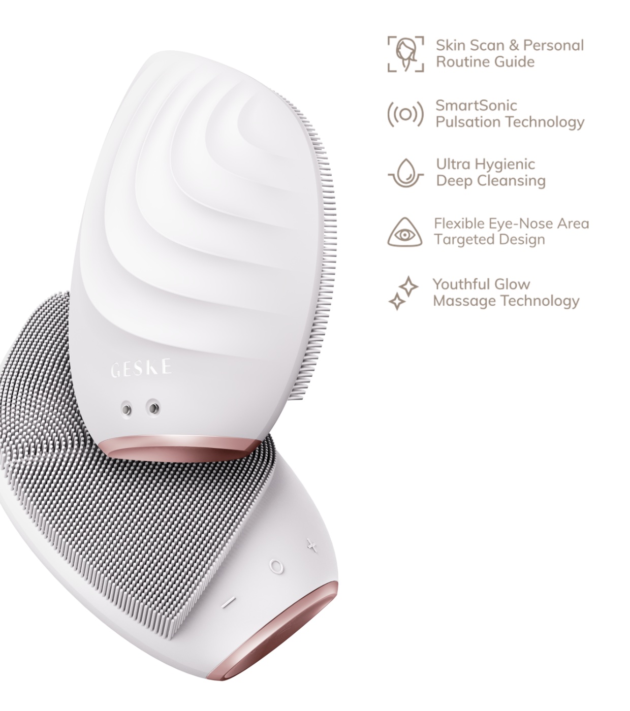 GESKE – Sonic 5-in-1-Gesichtsreinigungs- und Massagebürste – Weiß-Roségold