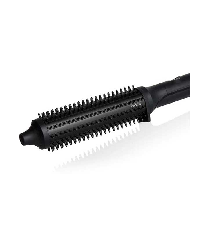 Die ghd-Rise-Stylingbürste kombiniert innovative Ultra-Zone-Predictive-Technologie und 5-mm-Nylonborsten, die sich perfekt zum Erreichen der Haarwurzeln eignen und Ihnen beneidenswertes Volumen sowie eine weiche, zugfreie Frisur bieten.