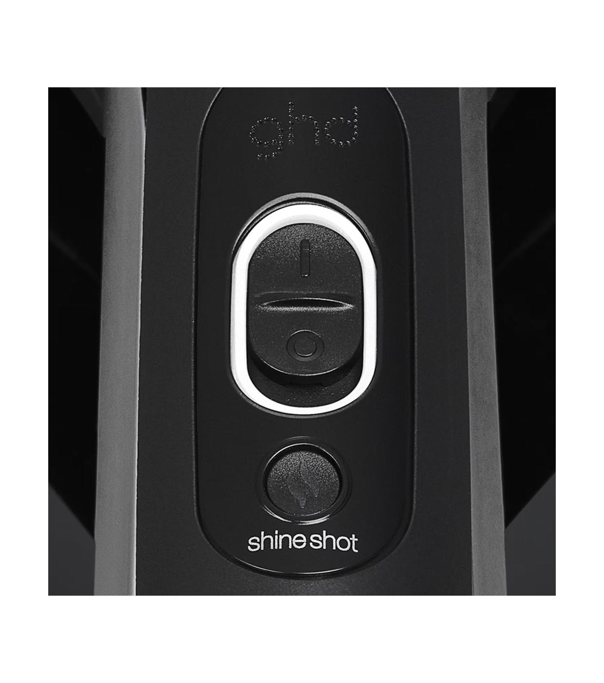 Es verfügt über den exklusiven Shine Shot™-Modus, der nur für die Verwendung bei trockenem Haar geeignet ist, da es sich in einen Glätteisen verwandelt, der bei 185 °C arbeitet und sofortige kräuselfreie Ergebnisse mit 2x mehr Glanz und 3,5x besserer Glättung des Haares liefert.