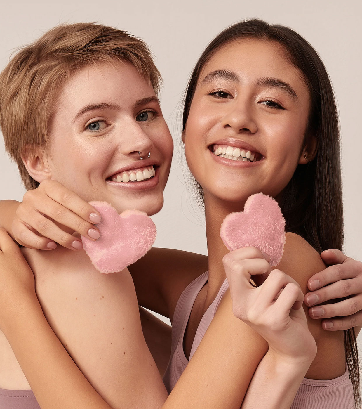 Aber das ist noch nicht alles. Dieses Set enthält außerdem drei ultraweiche herzförmige Kosmetikpads. Mit diesen patentierten und wiederverwendbaren Pads können Sie problemlos alle Ecken und Falten Ihres Gesichts erreichen. Verwenden Sie es allein mit Wasser oder Ihren bevorzugten Reinigungsprodukten, um mit GLOV® eine klarere, strahlendere Haut zu genießen.